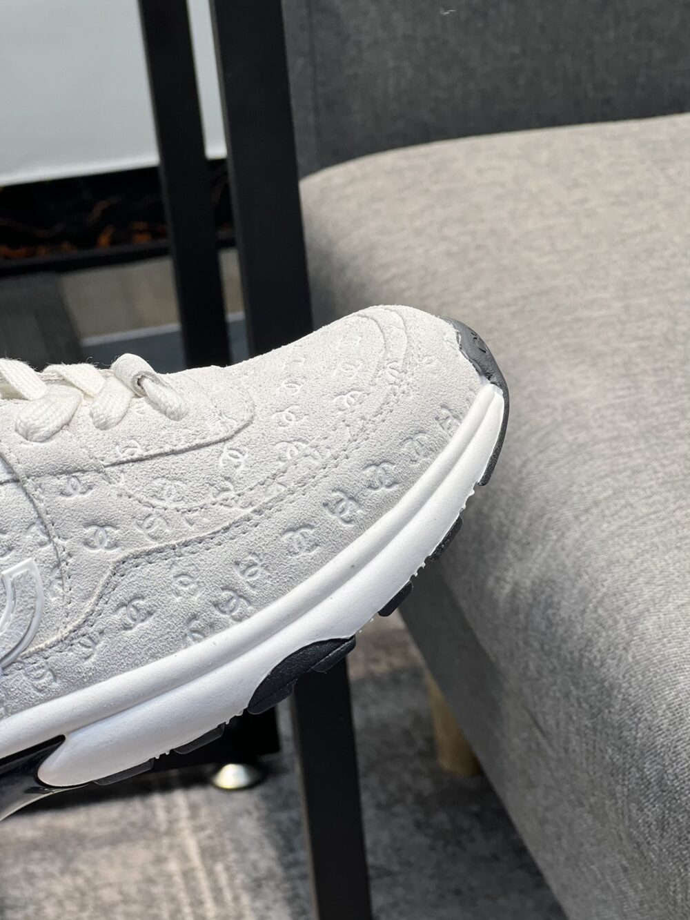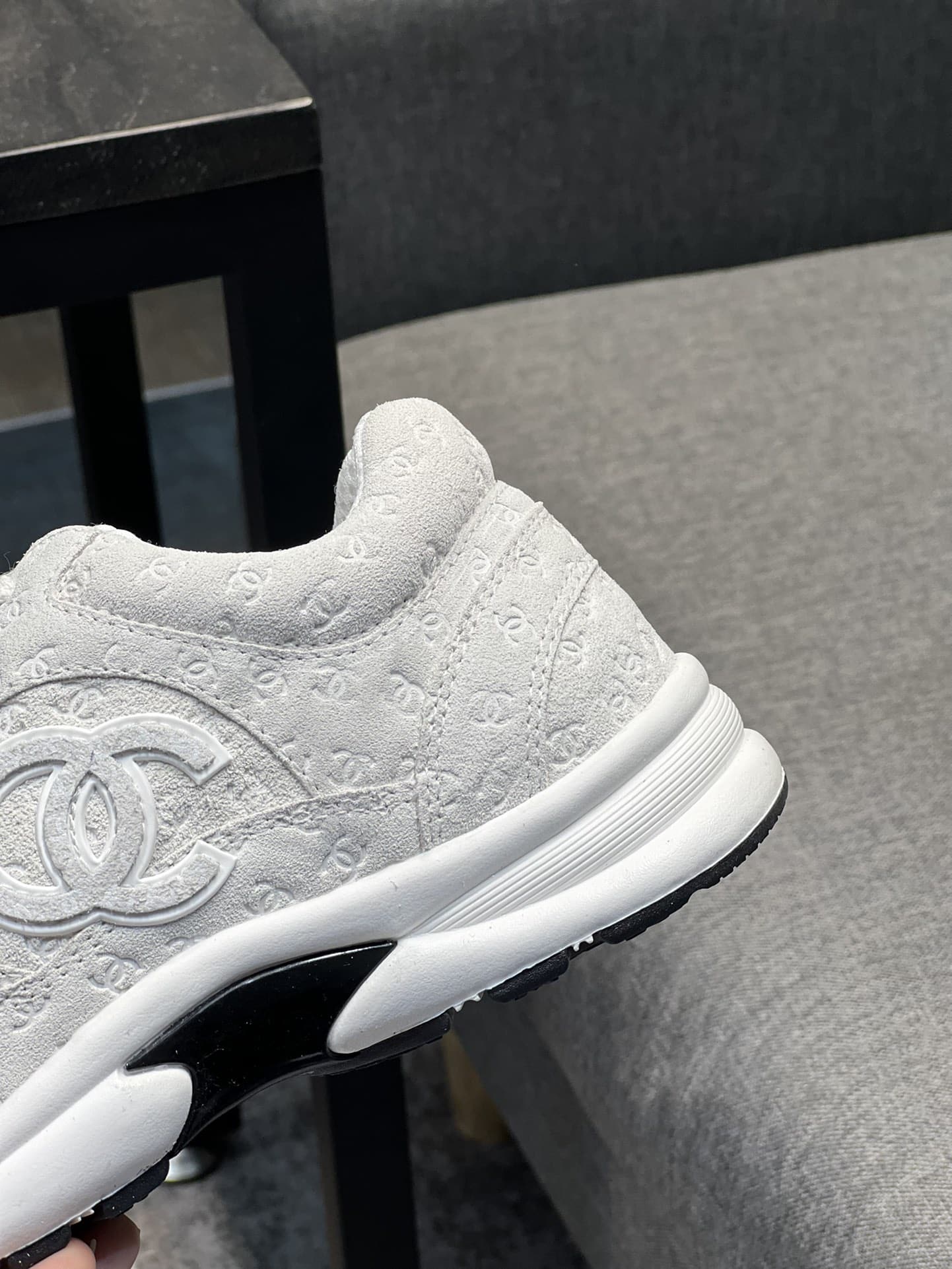 CHANEL CC EMBOSSED LOGO SUEDE WHITE