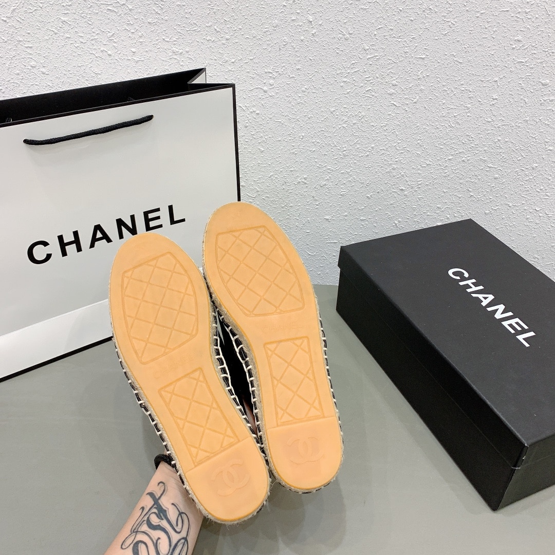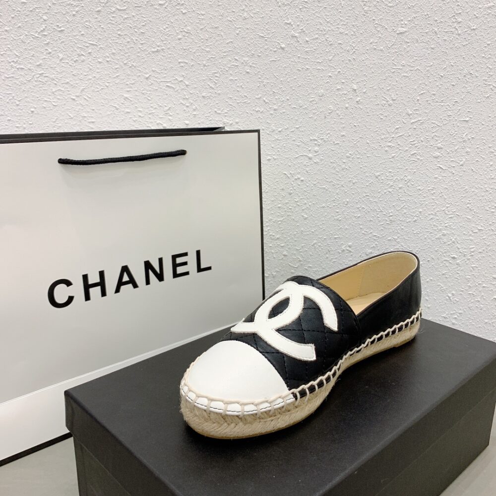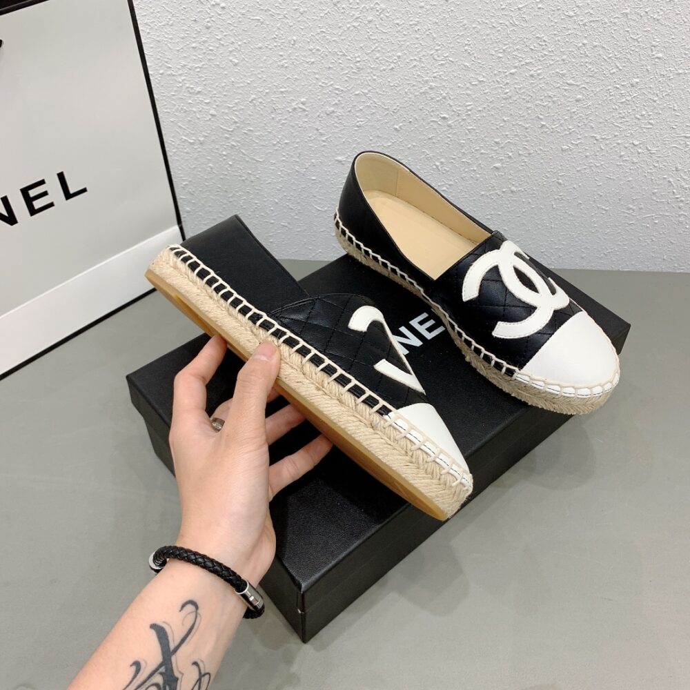 CHANEL CC ESPADRILLES SLIP ON WHITE BLACK