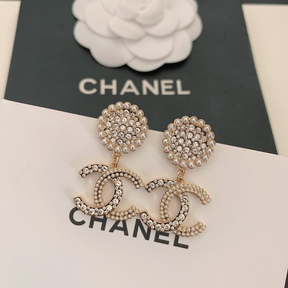 Chanel CC Faux Pearl and Crystal Drop Earrings