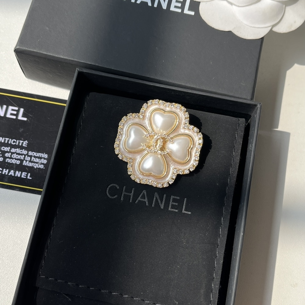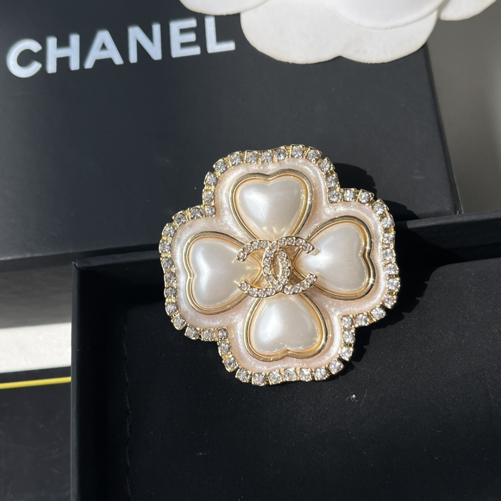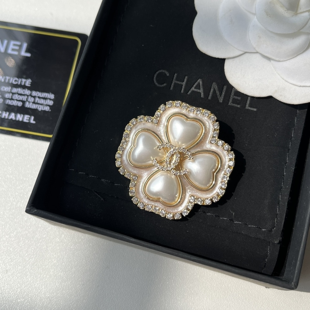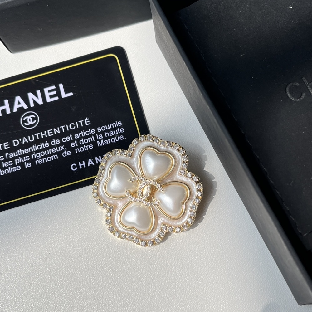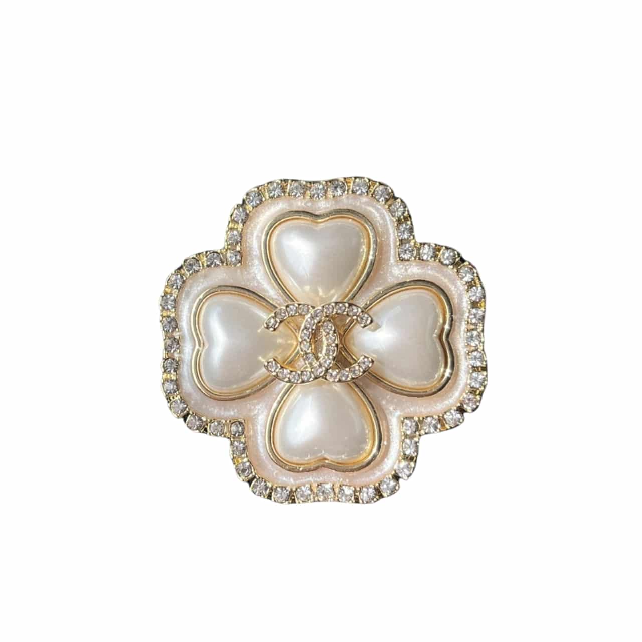 Chanel CC Flower Brooch Gold With Pearl Heart