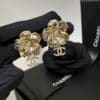 CHANEL CC FLOWER EARRINGS WITH CRYSTAL GOLD
