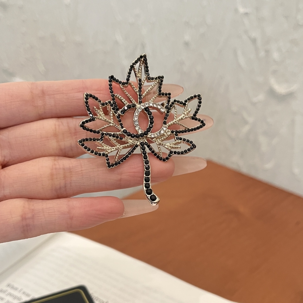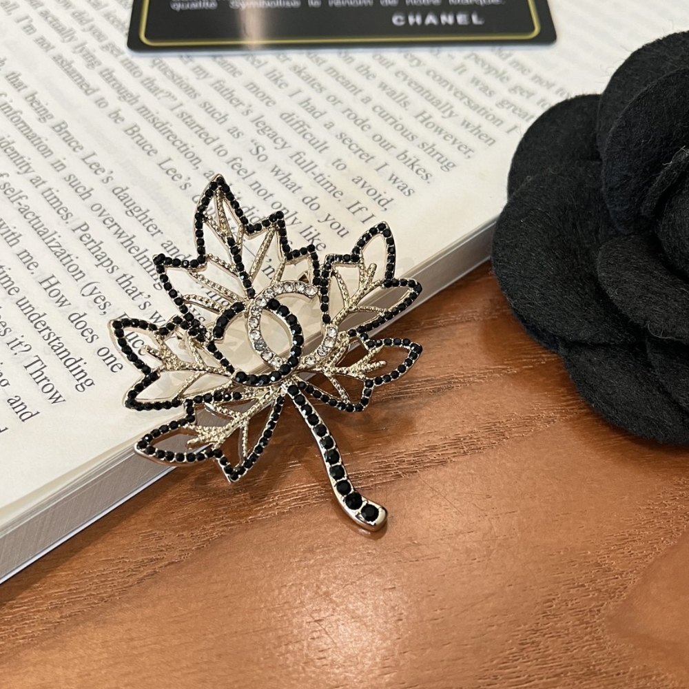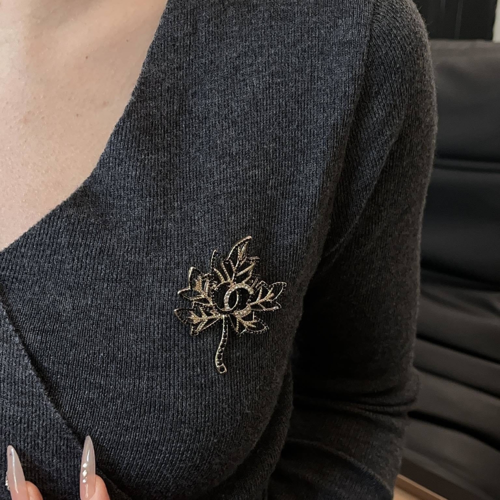 Chanel Brooch / CC Leaf Black / Gold tone hardware / Elegant style