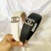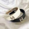 Chanel Cc Tweed Headband With Gold Hardware In Salt And Pepper