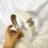 Chanel Cc Tweed Headband With Gold Hardware In Salt And Pepper