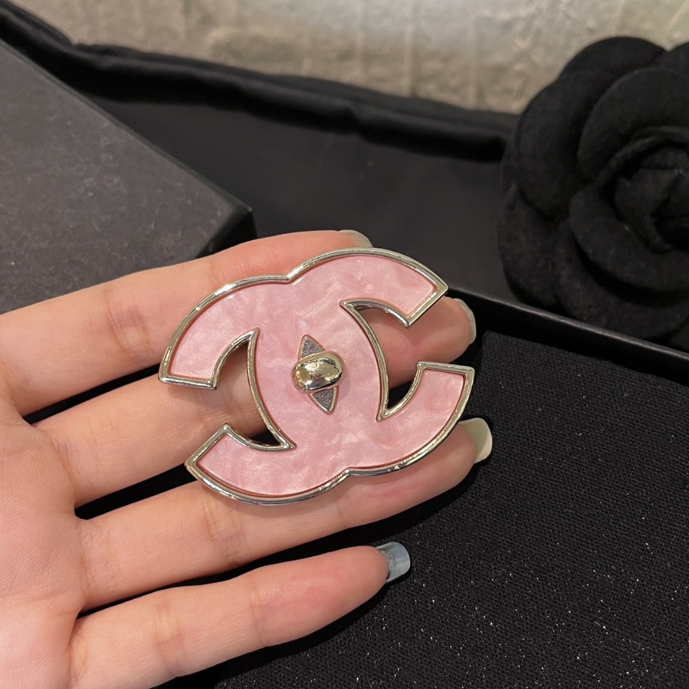Chanel CC Logo Brooch / Pink enamel / Gold tone hardware / Chic style
