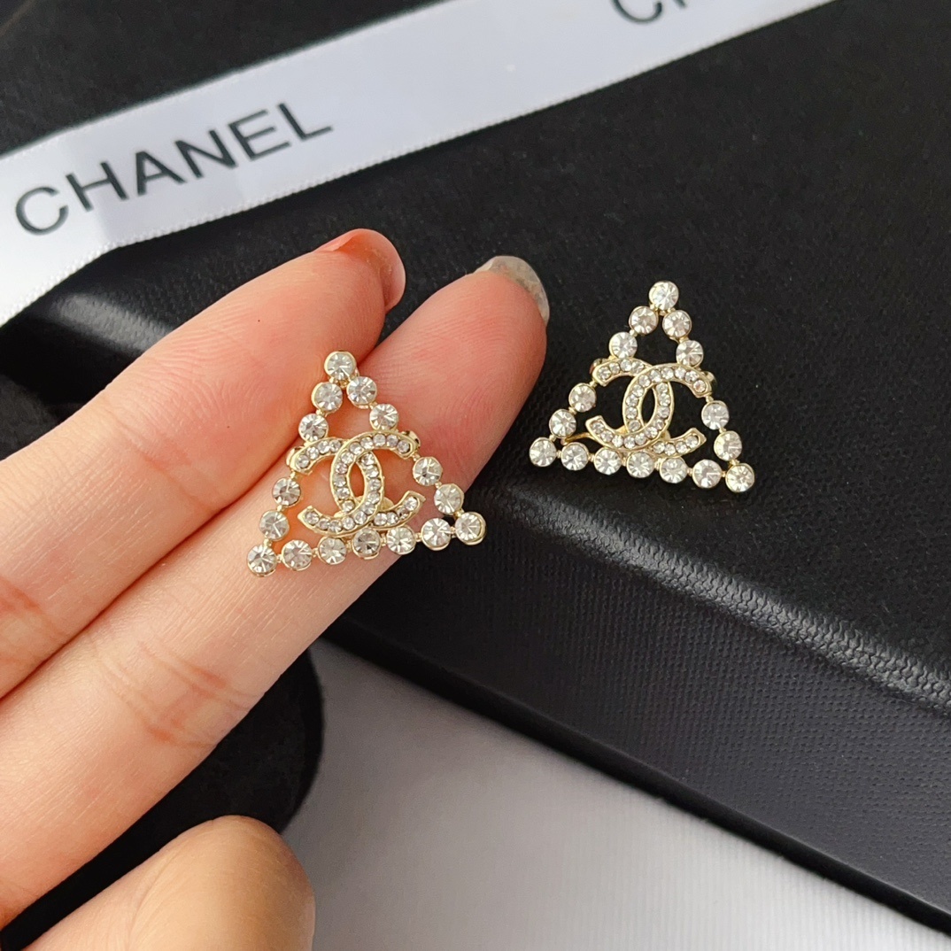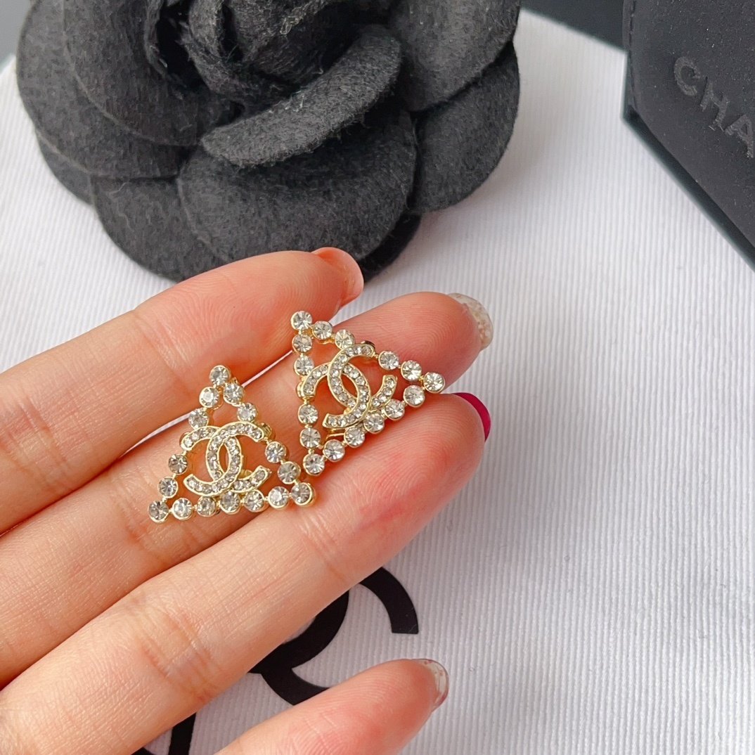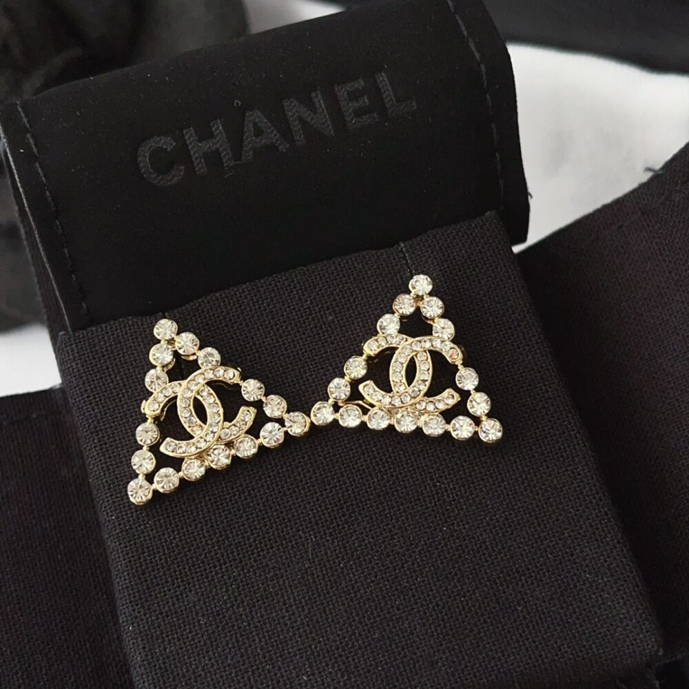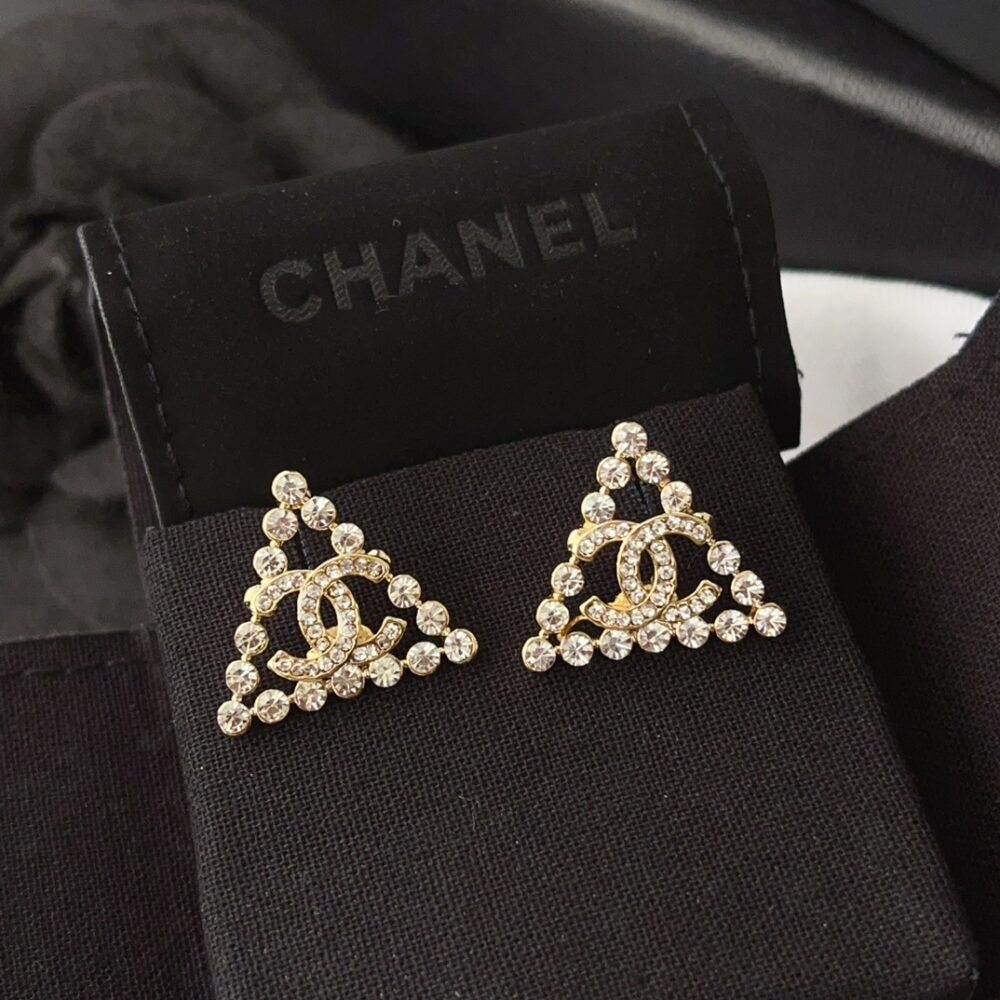 Chanel CC logo Earrings / Triangular Gemstones / Gold Metal / Fit Daily Essentials / Elegant Jewelry
