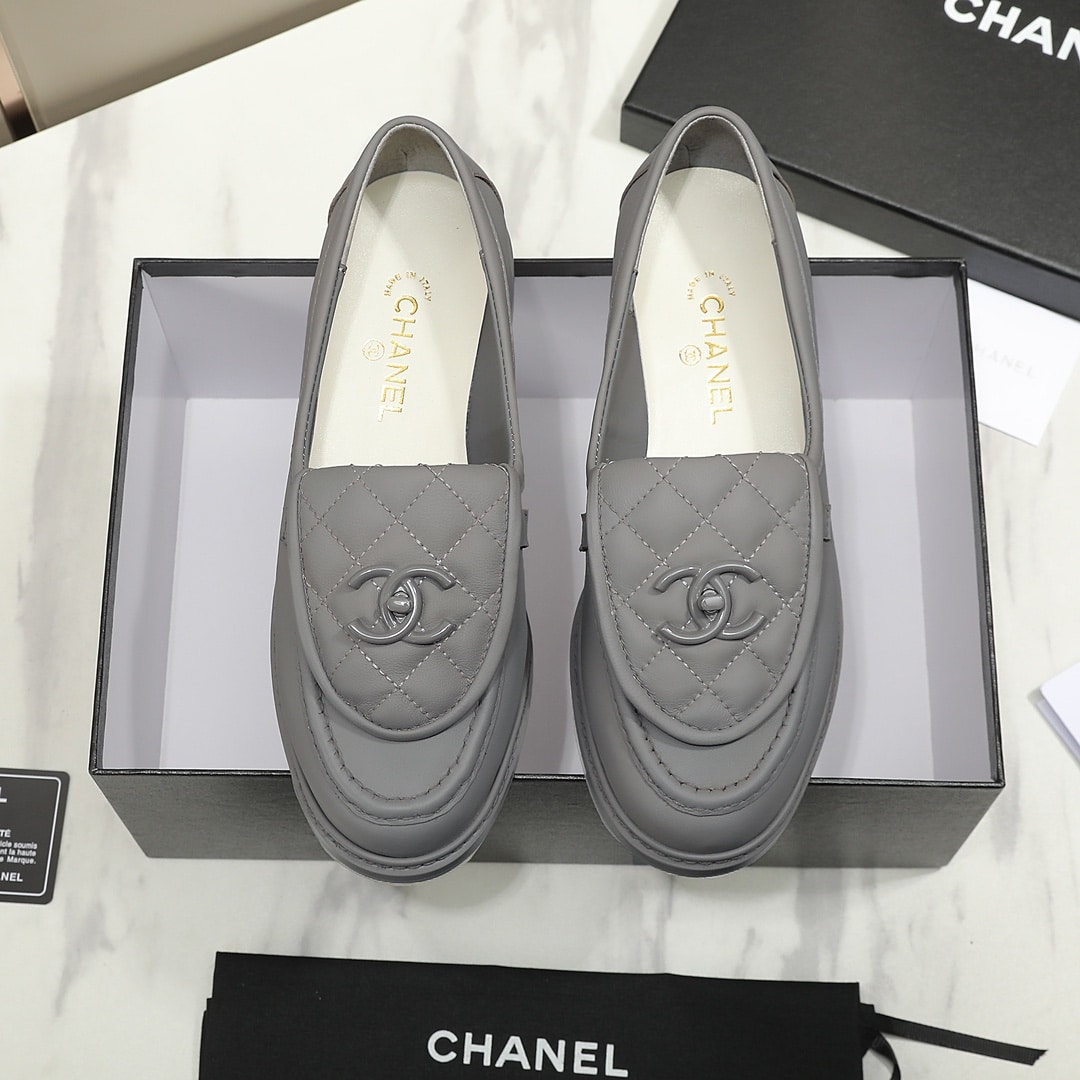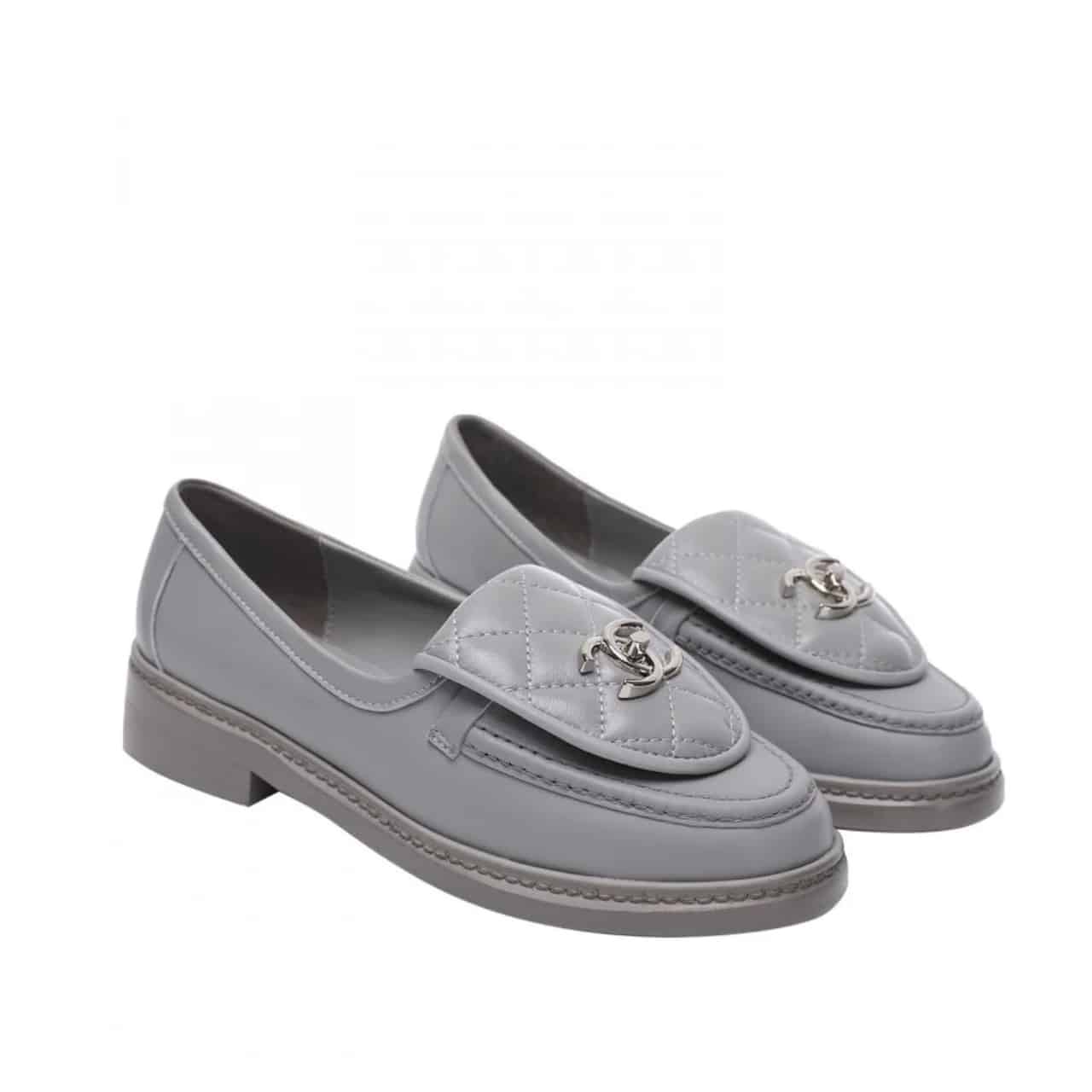 CHANEL CC NIB TURNLOCK MOCCASINS FLAT LOAFERS GREY