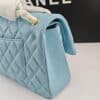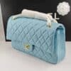 Chanel Classic 11.12 Handbag Gold Tone Metal Light Blue / 30 cm / 11.8 inches