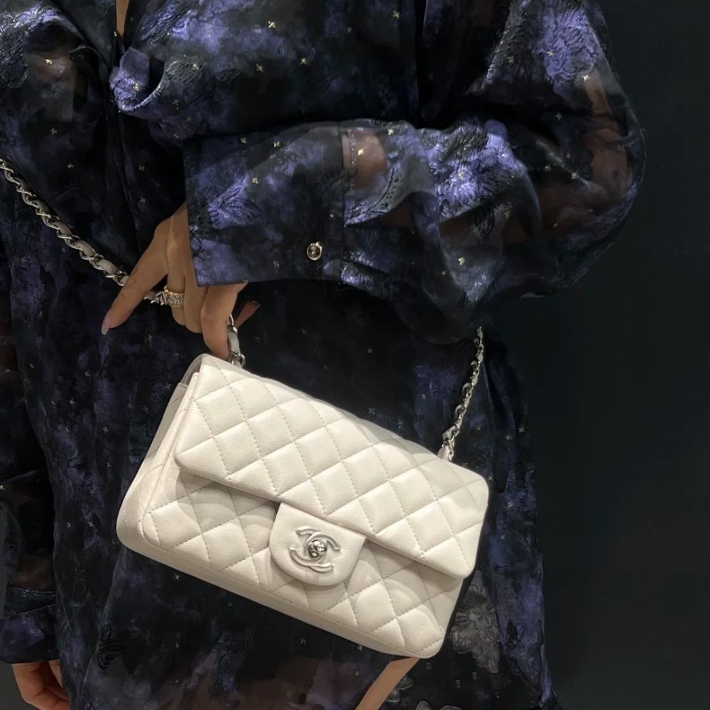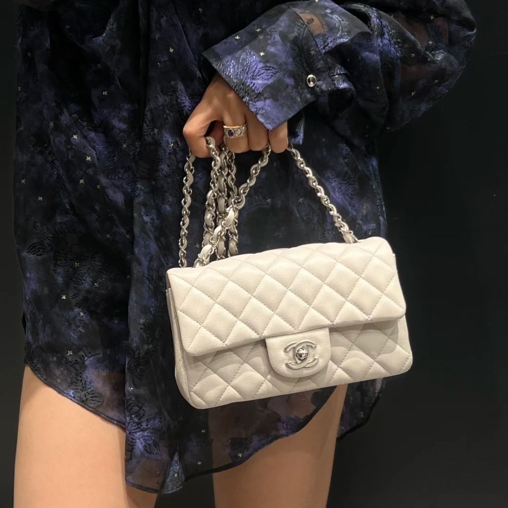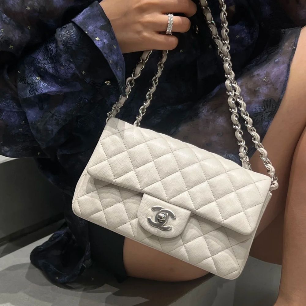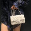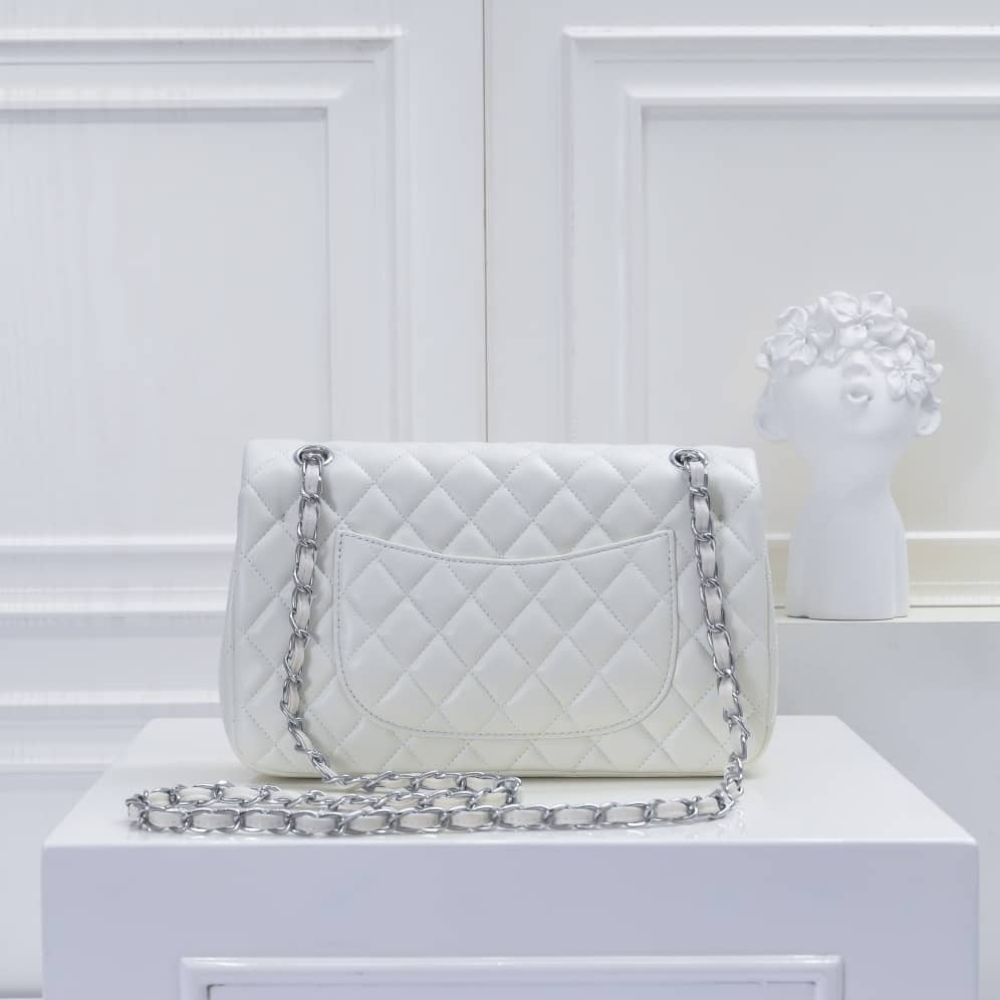 Chanel Classic Double Flap Bag White Silver Hardware features the iconic quilted silhouette crafted from luxurious leather, accented with elegant silver-tone hardware. Designed with the signature double-flap construction, it offers timeless sophistication and practical organization. A true classic that elevates both everyday and evening looks with effortless elegance.
