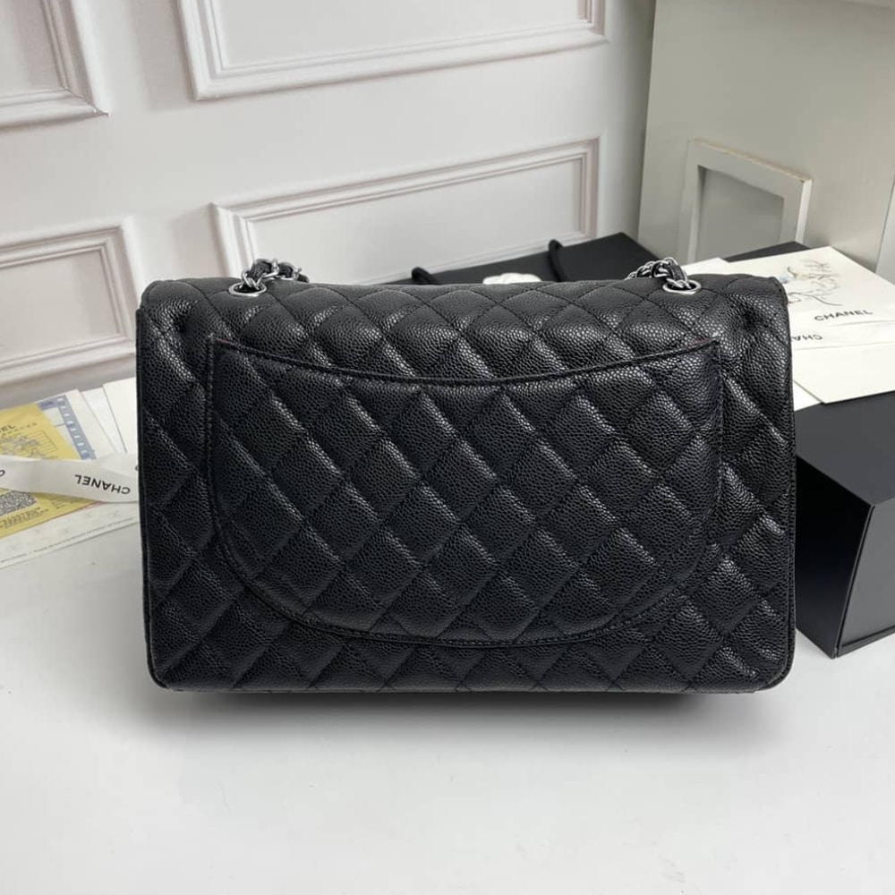 Chanel Maxi Classic Handbag Sliver Hardware Black / 33cm / 13inches