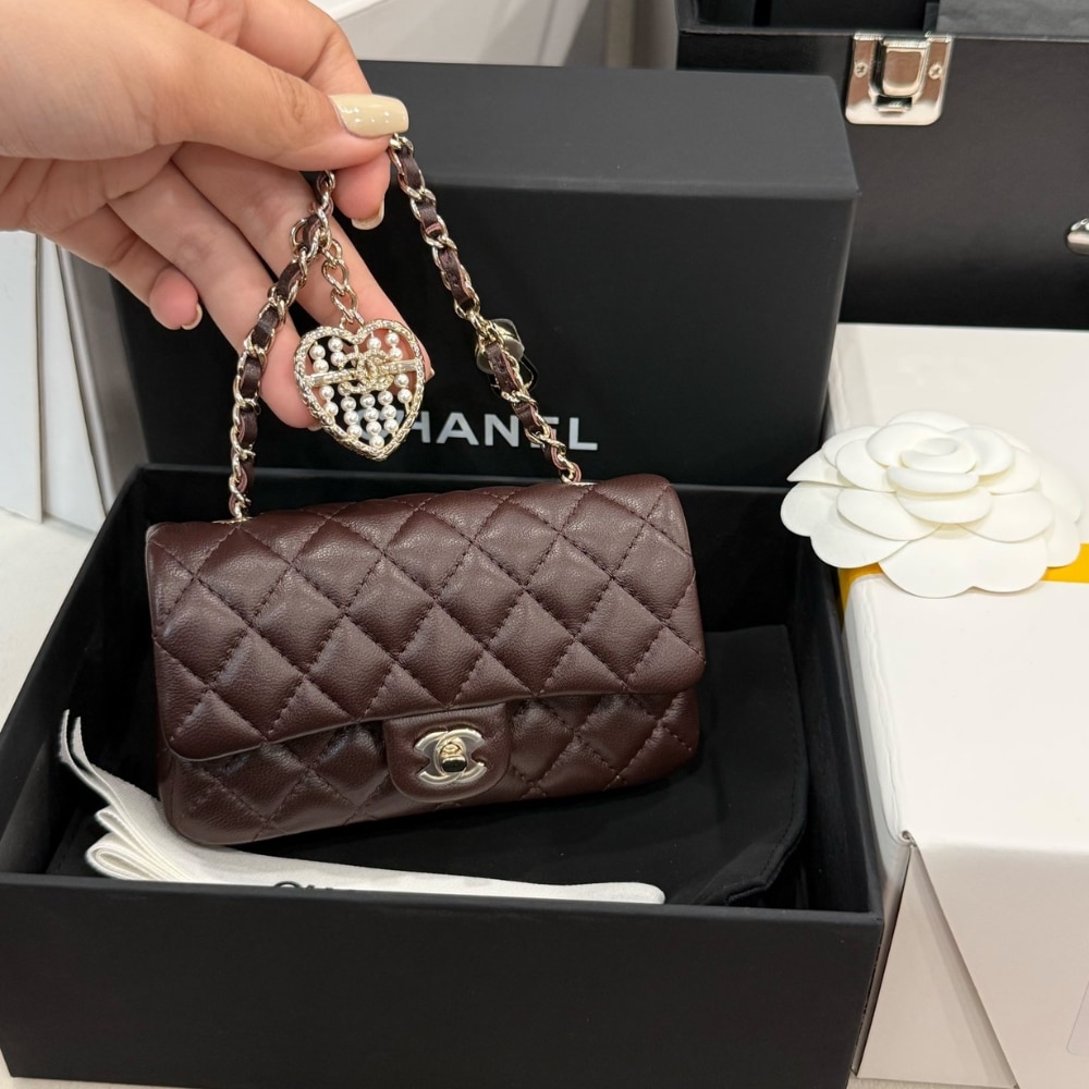 Chanel Classic Mini Bag With Hook Dark Brown 12Cm / 4.9 inches