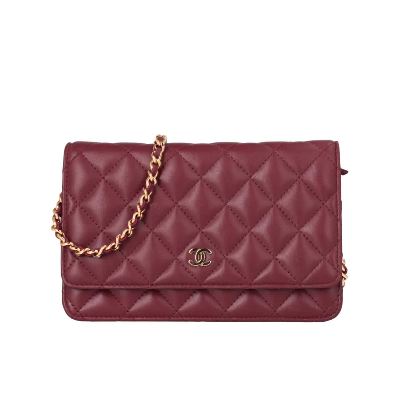 Chanel Classic Wallet on Chain Gold Burgundy 19Cm / 7.5 inches
