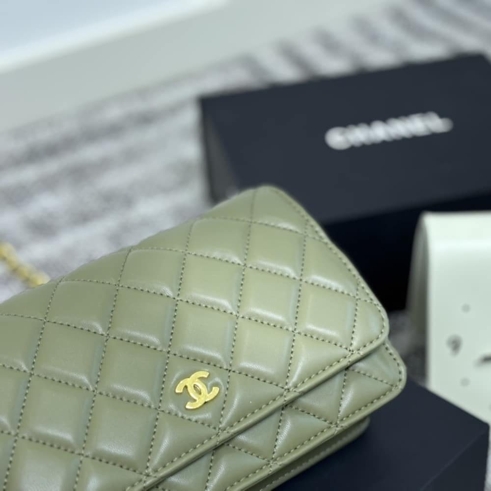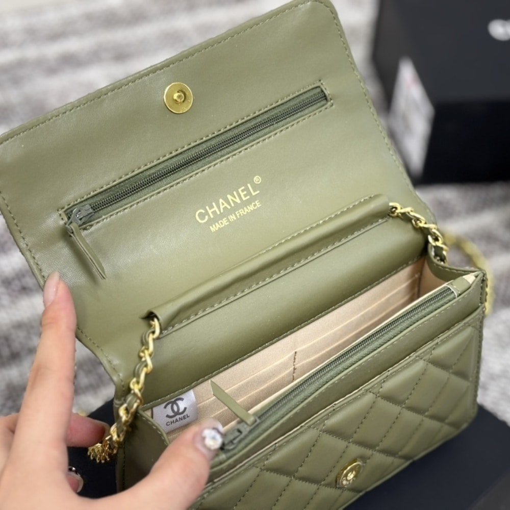 Chanel Classic Wallet On Chain Gold Tone Metal Khaki 19Cm / 7.5 inches