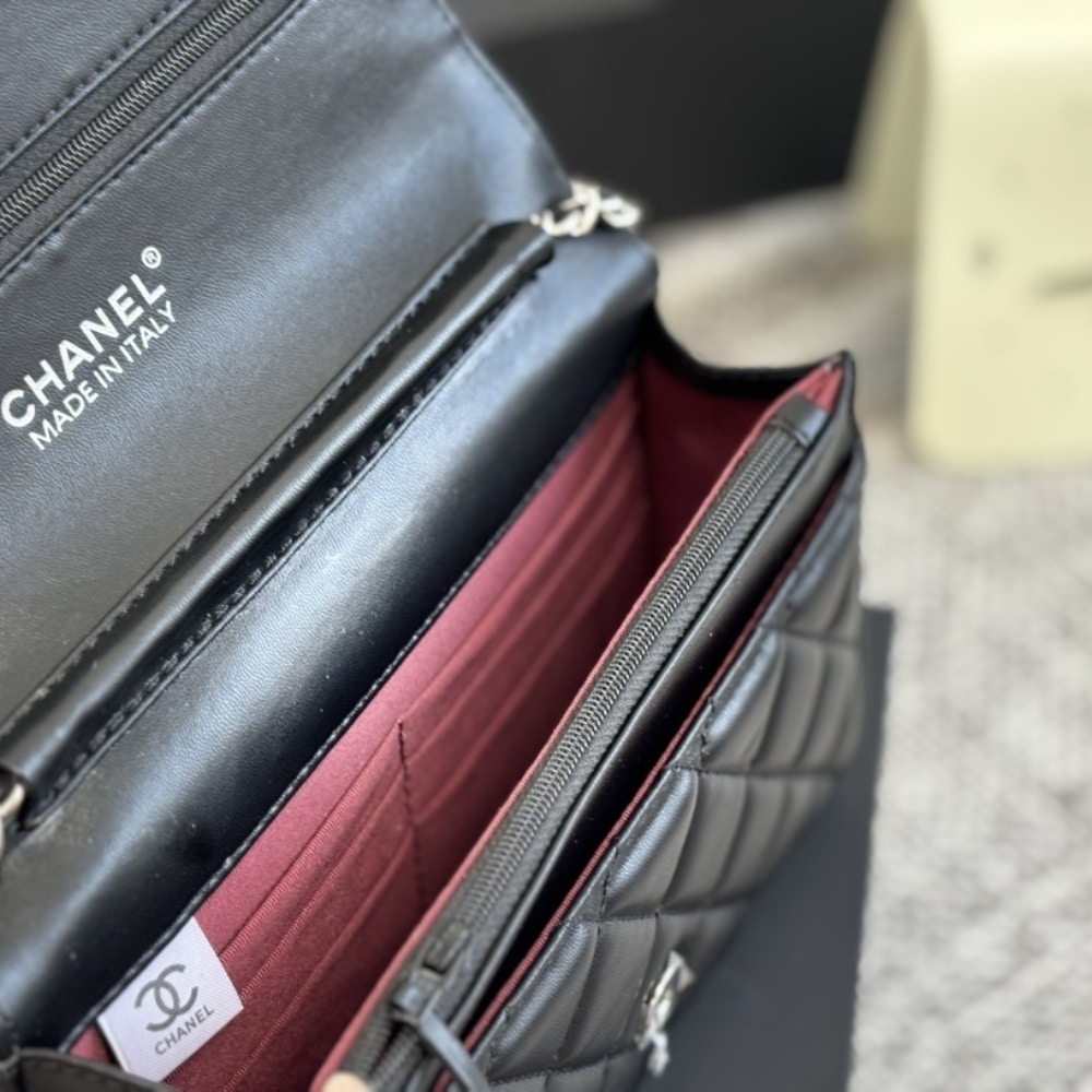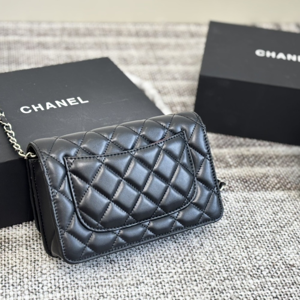 Chanel Classic Wallet on Chain Silver Black 19Cm / 7.5 inches