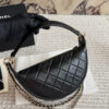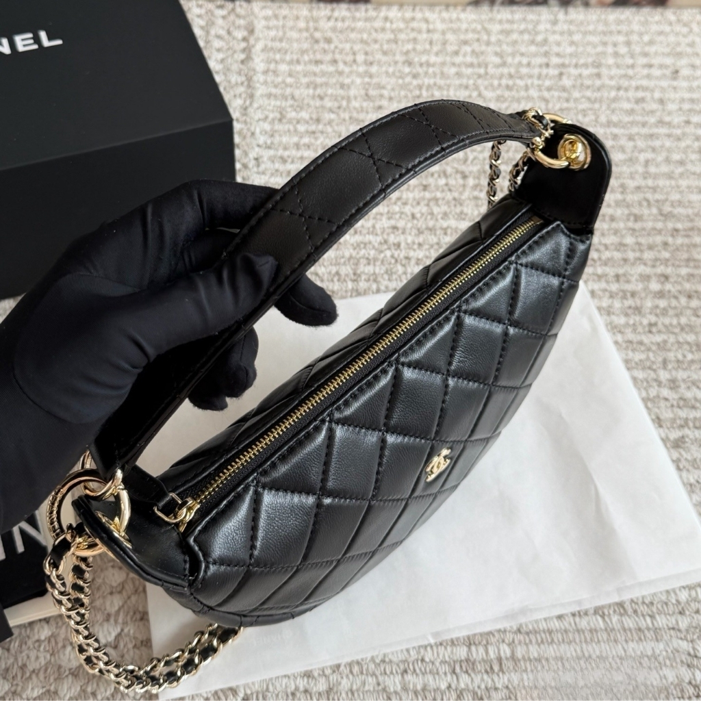 - Handle: Single metal chain handles