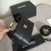 Chanel Clutch with Chain / Leather / Black / 7.5 x 6.5 inches / Gold-toned hardware / Fits smartphone, cardholder, and small cosmetics / Elegant clutch bag