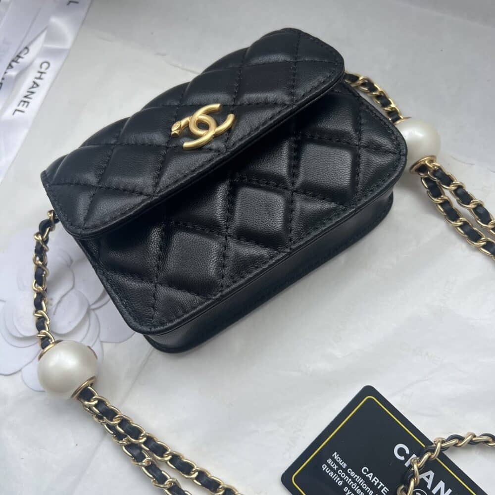Chanel Clutch With Chain Pearl Crush Gold Hardware Black AP1628 B02916 94305 / 15 cm / 5.9 inches