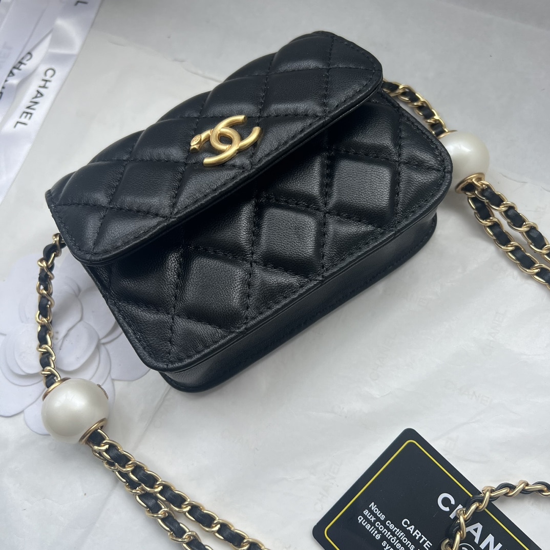 CHANEL CLUTCH WITH CHAIN PEARL CRUSH GOLD BLACK 15CM AP1628 B02916 94305