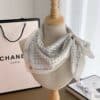 Chanel Coco Signature Silk Scarf In White 70cm