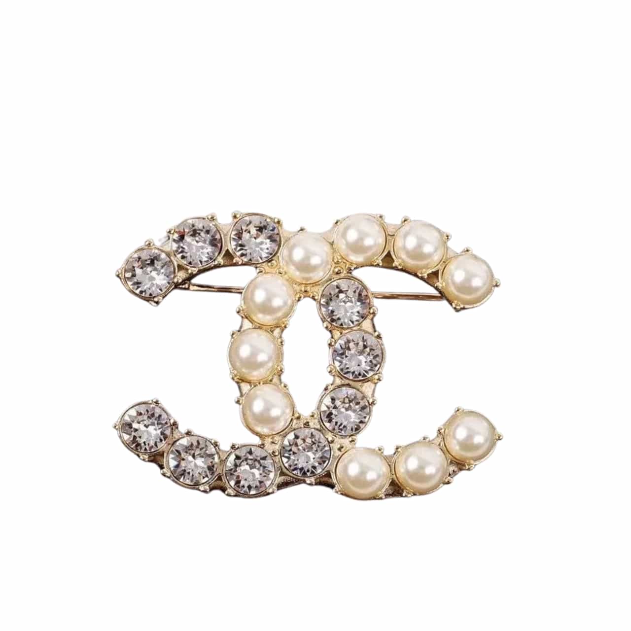 Chanel Cocomark Brooch Double C With Diamond And Pearl AB4734
