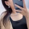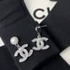 CHANEL DOUBLE C PEARL EARRINGS SILVER WHITE