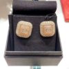 Gold-tone metal CC earrings from 2020 Fall/Winter Act 2 Collection. Square shape set with silver strass. Shiny pink insert with engraved CC logo. Gold-tone metal clip clasps with rubber reinforcement and engraved branding.