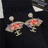 Chanel Fan Floral Enamel Pearl Drop Earrings Multicolour ABF930 B21130 U2139