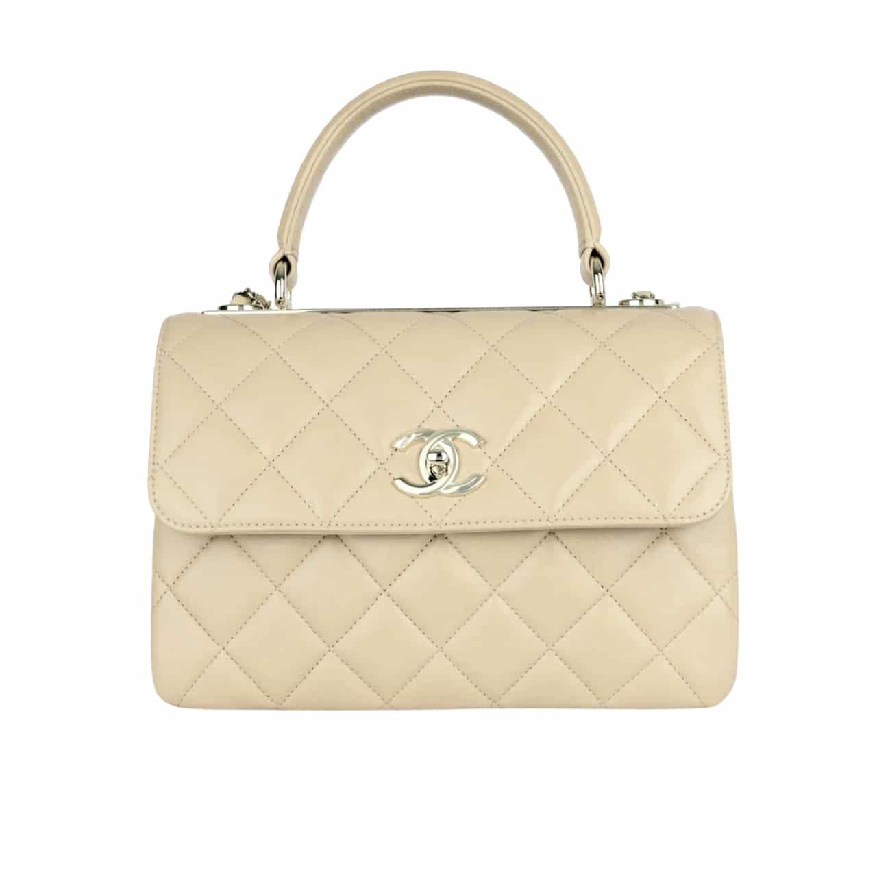 CHANEL FLAP BAG WITH TOP HANDLE/ 25CM BEIGE