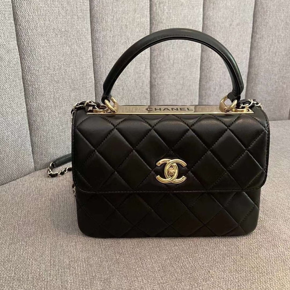 Chanel Flap Bag With Top Handle Bag With Gold Metal Black A92236 Y60767 94305 / 25 cm / 9.8 inches