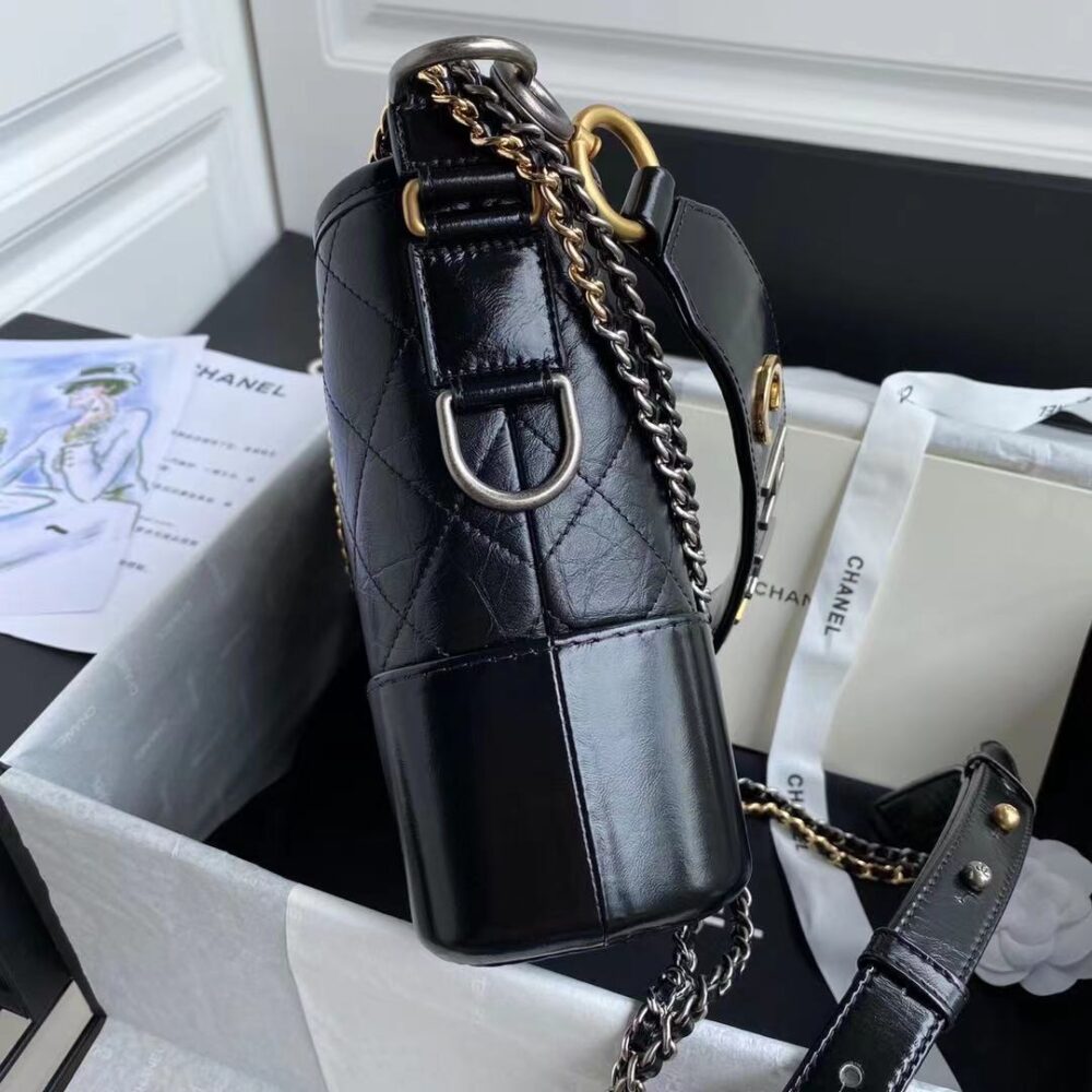 Chanel Gabrielle Small Hobo Bag Smooth & Gold Silver Tone Metal Black AS1582 B03936 94305 / 20cm / 5.9inches