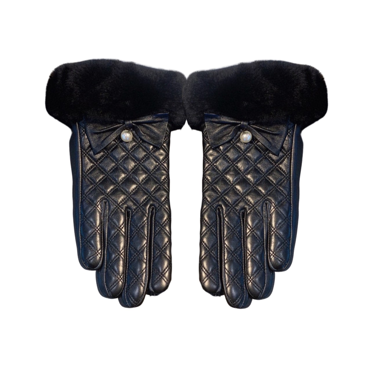 CHANEL GLOVES WITH BLACK FUR IN BLACK