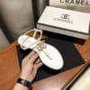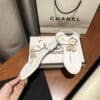 CHANEL GOLD PEARL CC LOGO THONG SANDALS WHITE