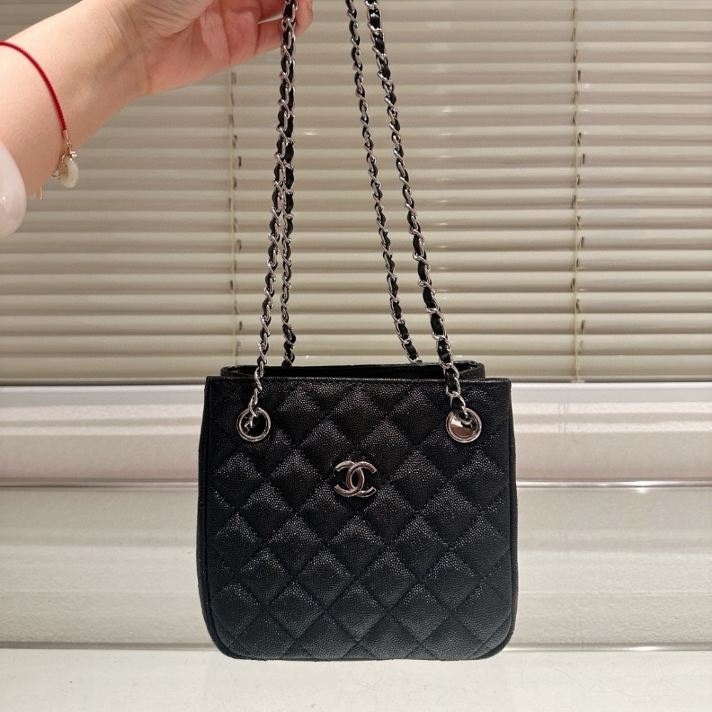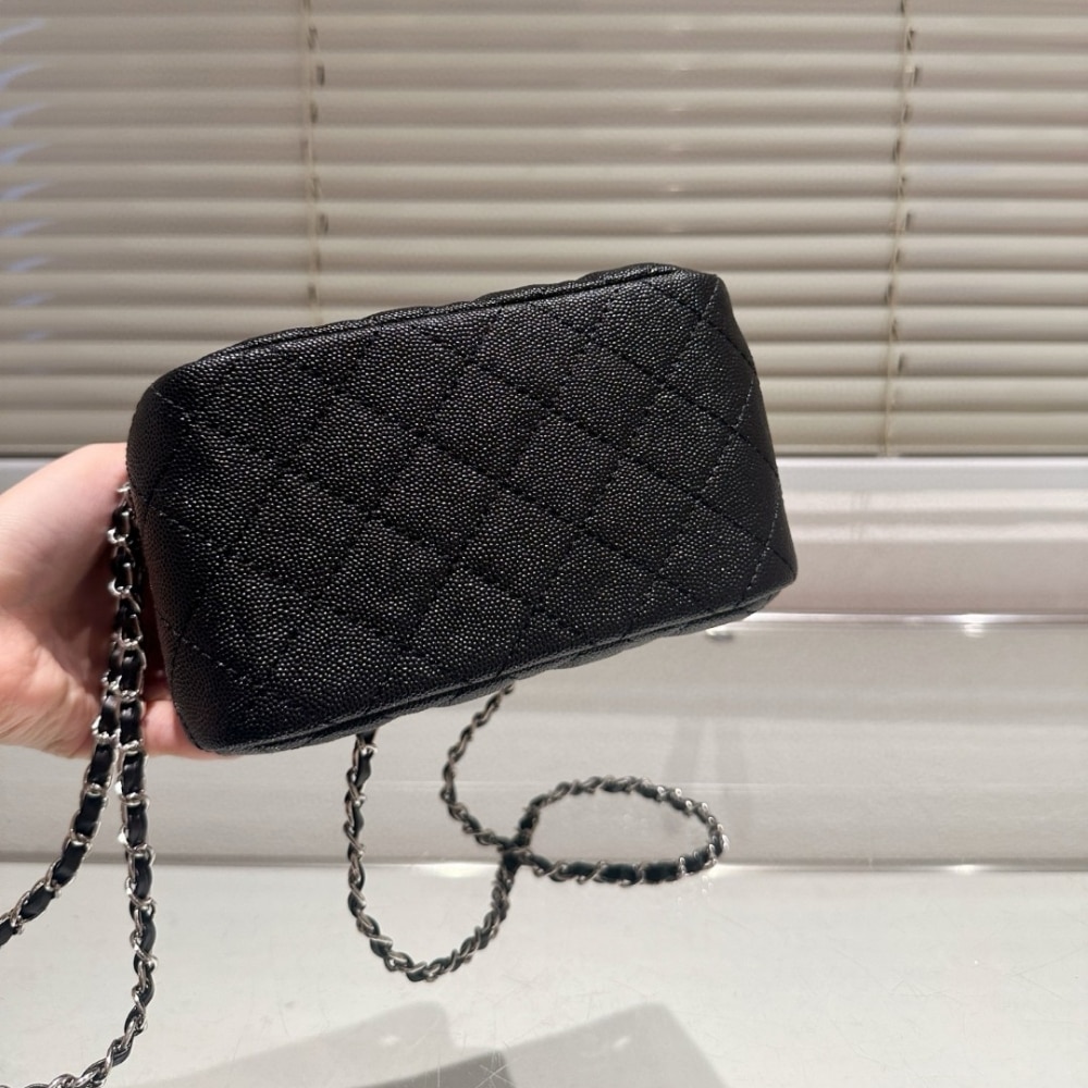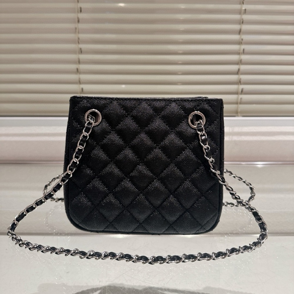 Chanel Grained Embossed Hobo Bag Black 17Cm