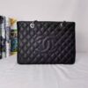 Chanel Grand Shopping Tote Bag Black Caviar Silver Tone Chain 34Cm