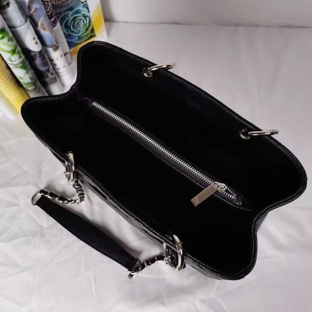 Chanel Grand Shopping Tote Bag / Caviar Leather/ Silver Tone / Black / 34 cm / 13.3 inches / Shoulder Bag / Classic Style for Women