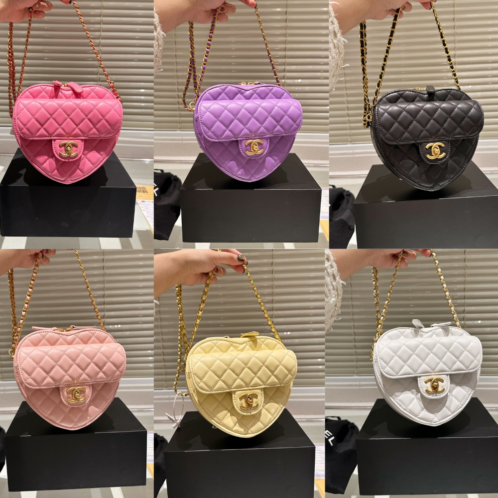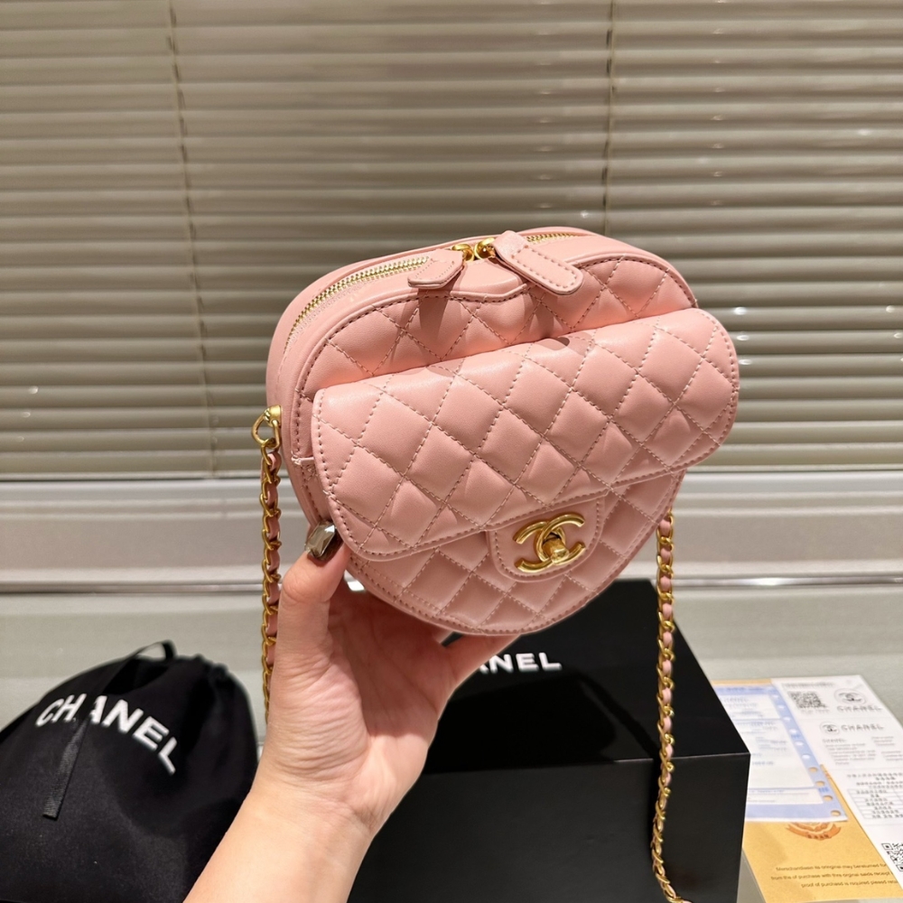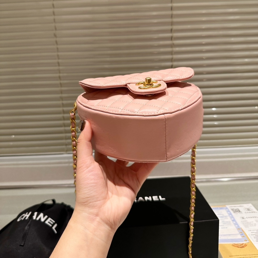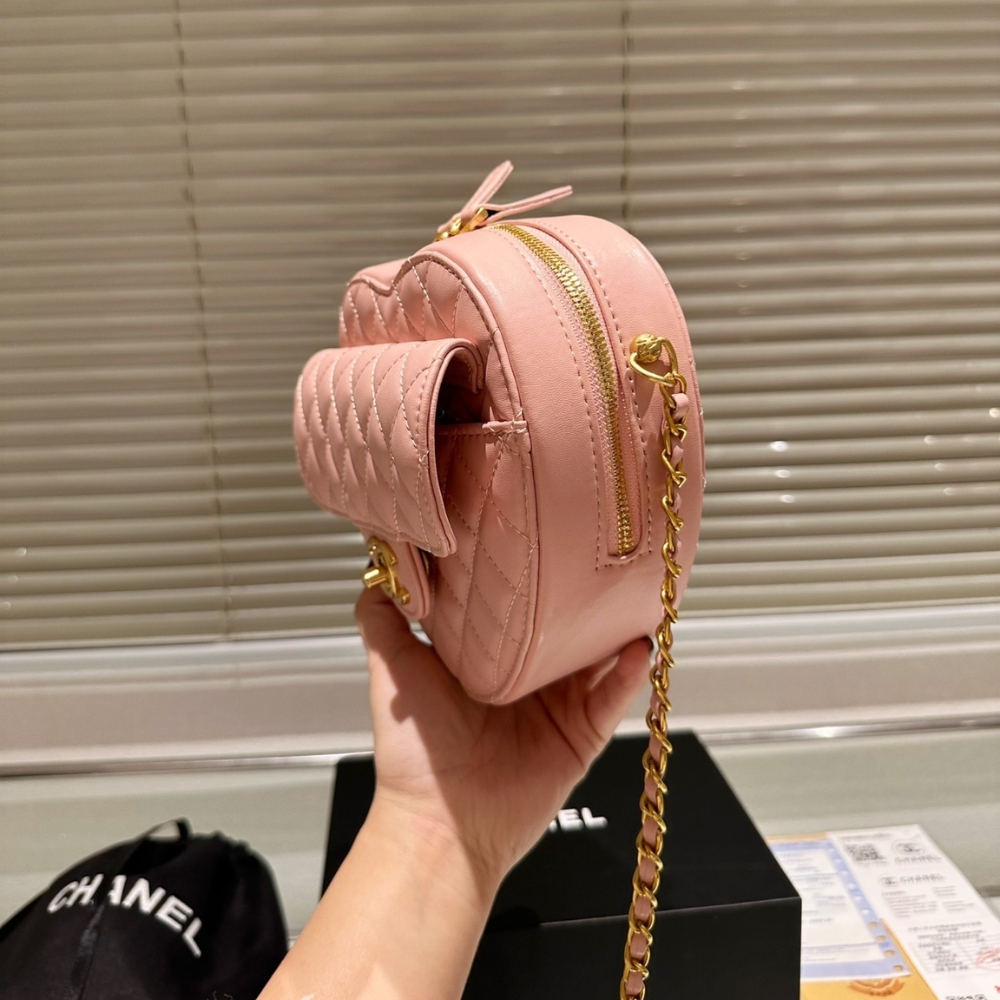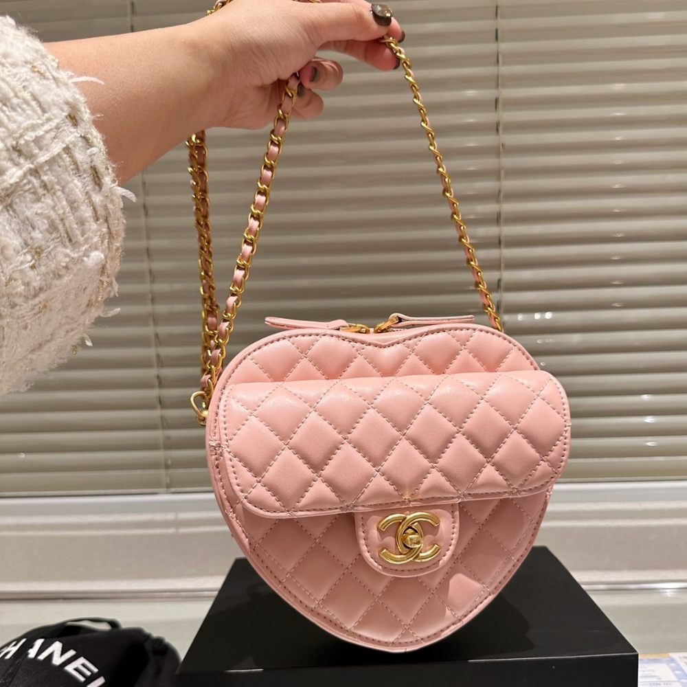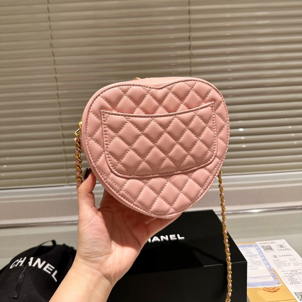 Chanel Heart Bag Light Pink / 6.3 inches / Gold Tone Metal / Elegant Style / Daily Bags