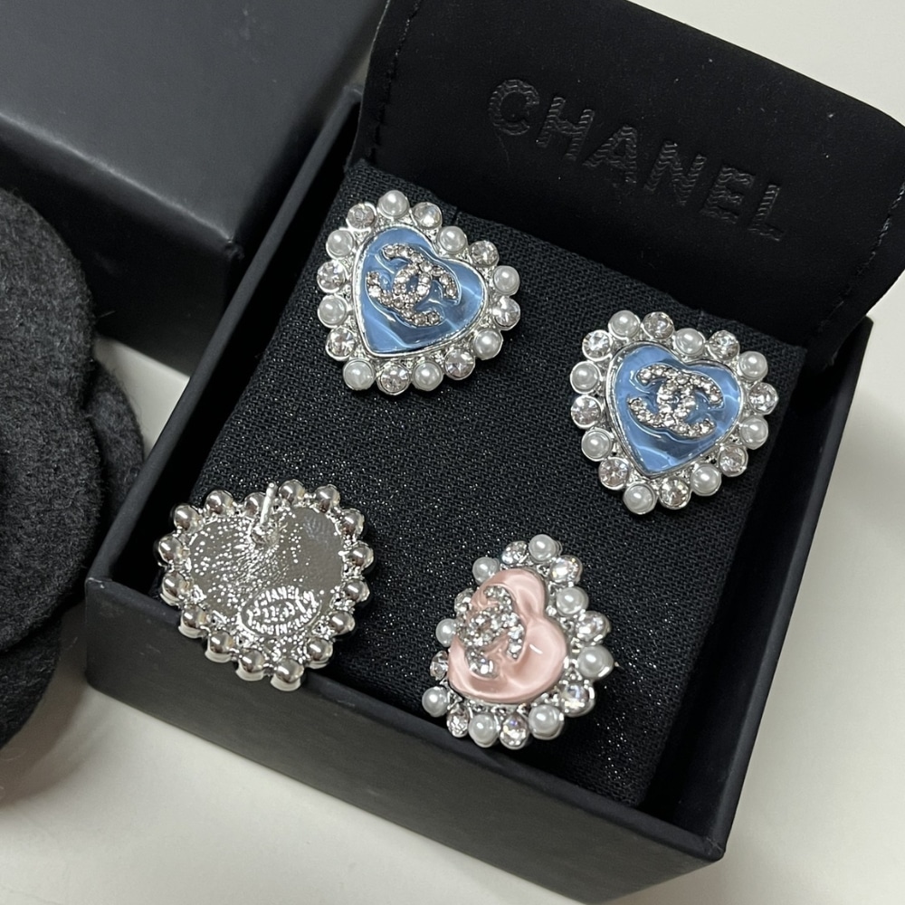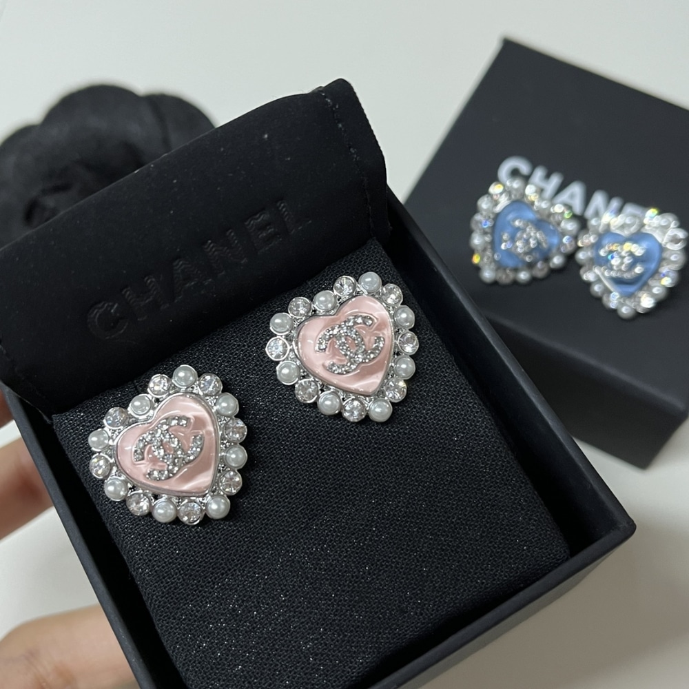 Chanel Heart Motif And Crystal Earrings In Pink