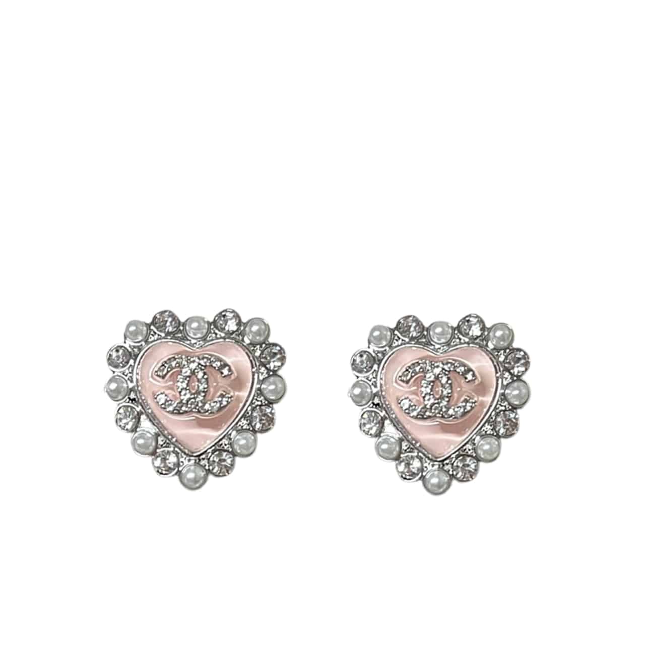 CHANEL HEART MOTIF AND CRYSTAL EARRINGS IN PINK