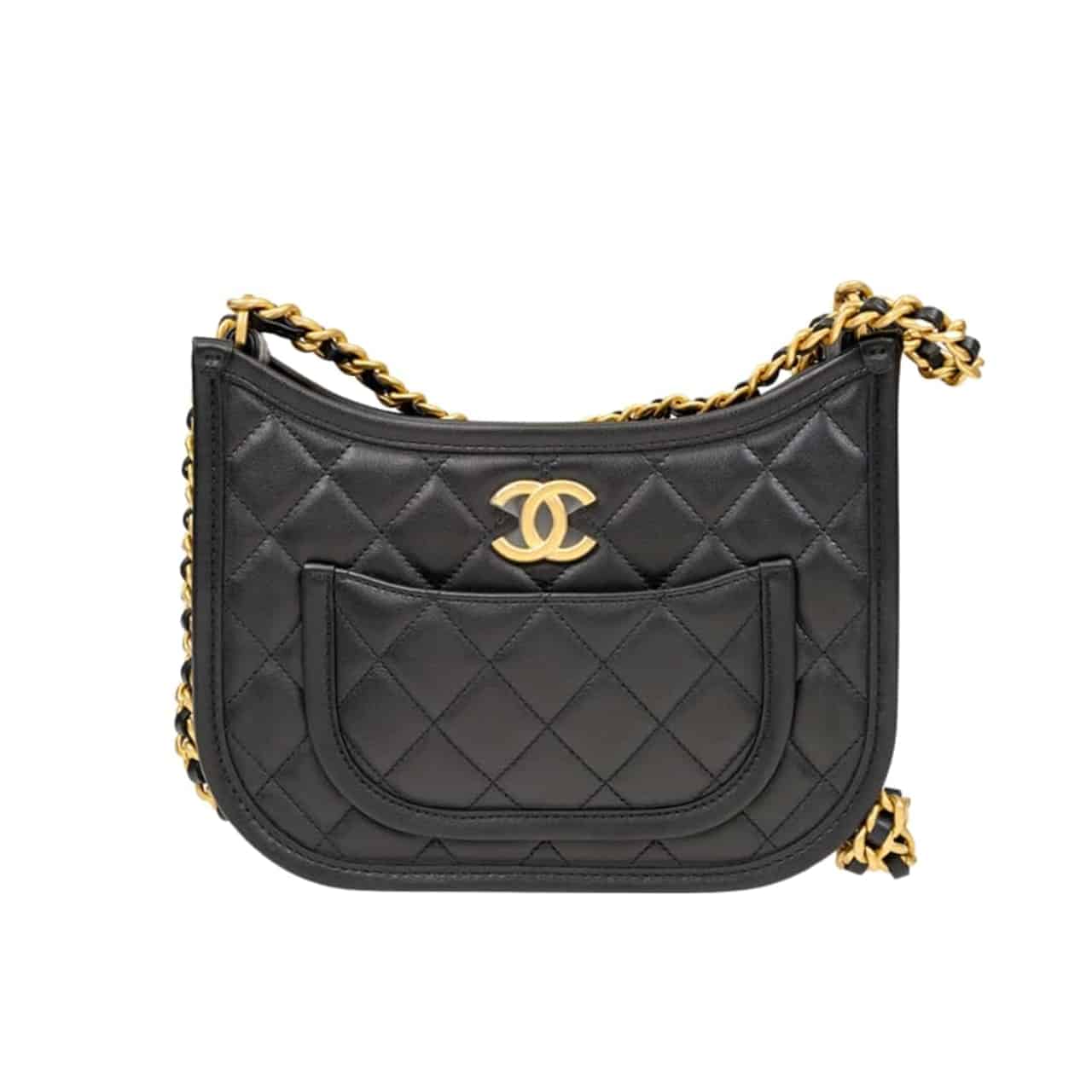 Chanel//Hobo Handbag Gold Tone Metal //Black //23cm //As4666