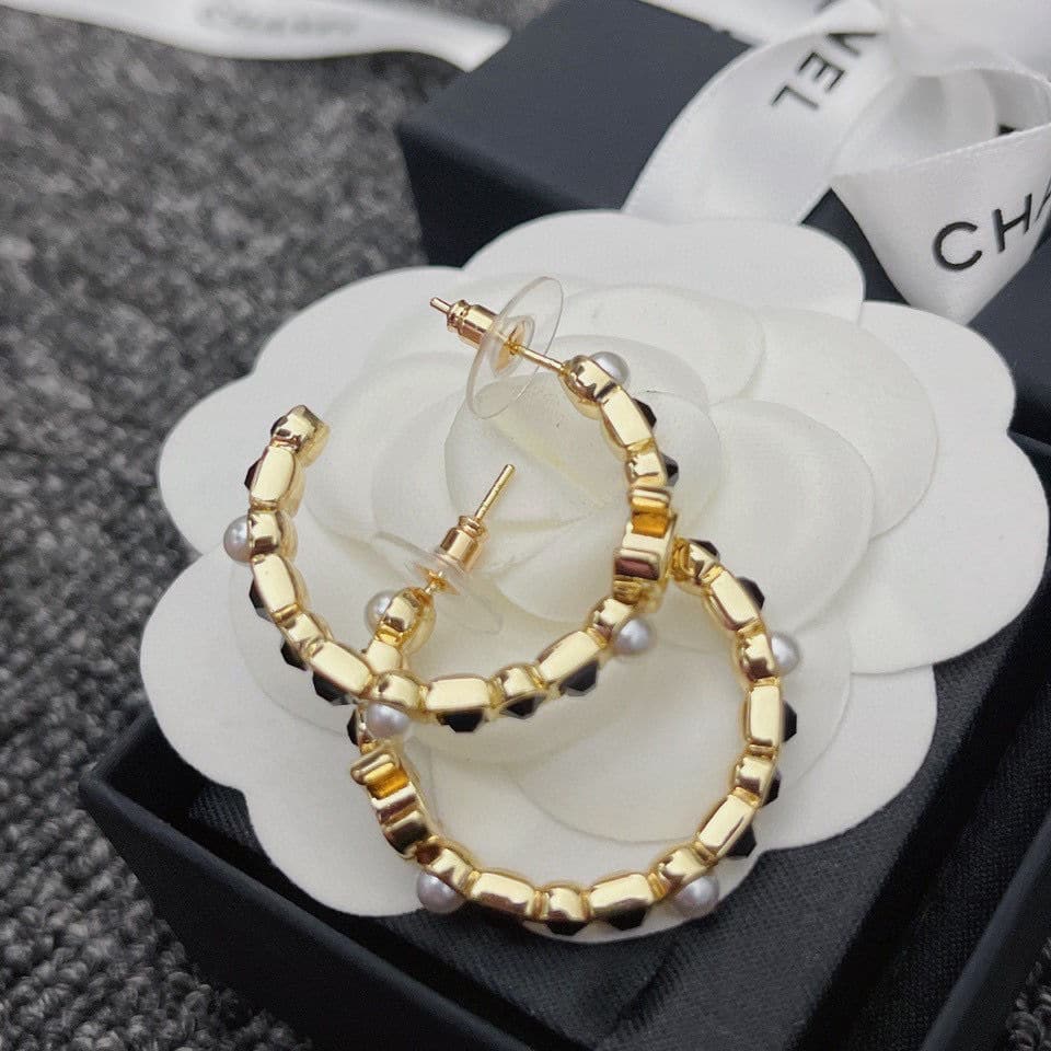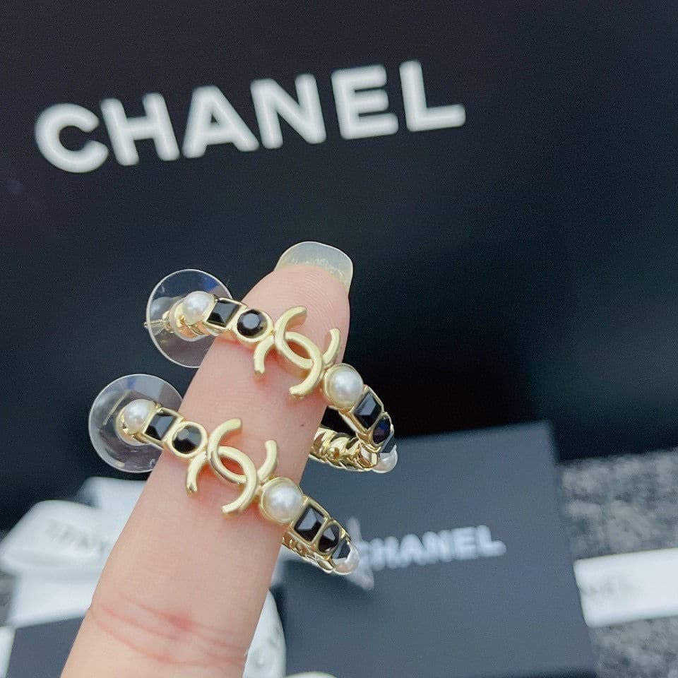 Chanel CC Hoop Earrings Metal Gold And Black AB7836 B07668 NG856