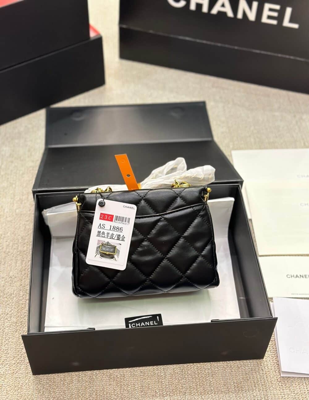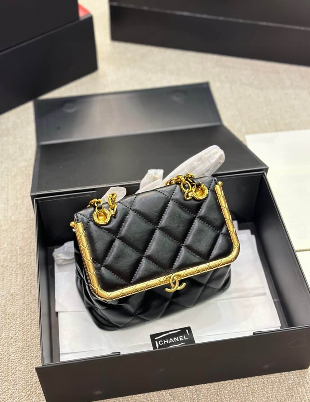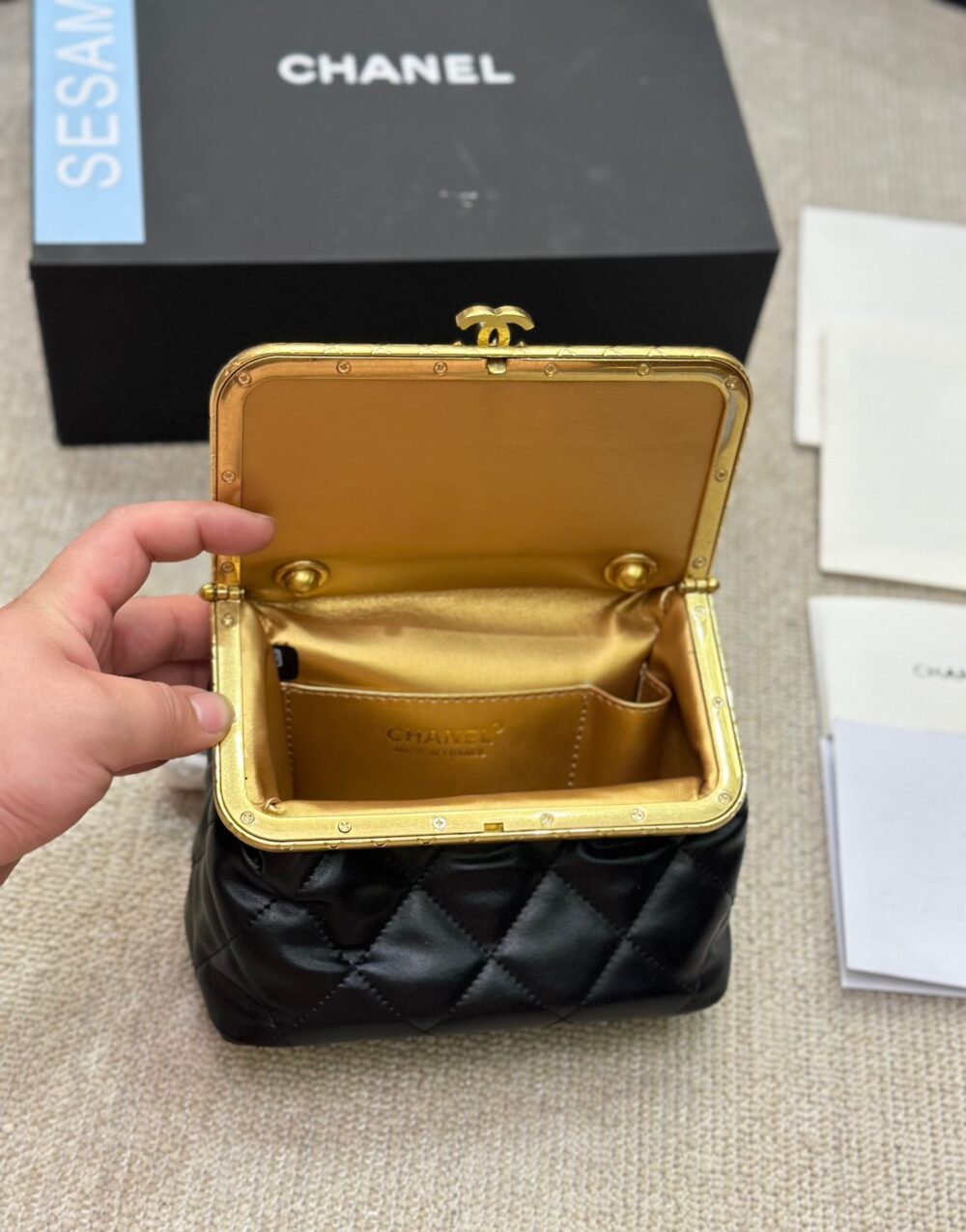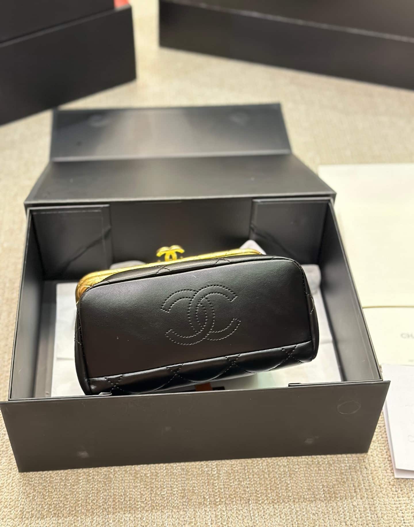 Chanel //Kiss Lock Evening //Black Leather Quilted //19cm