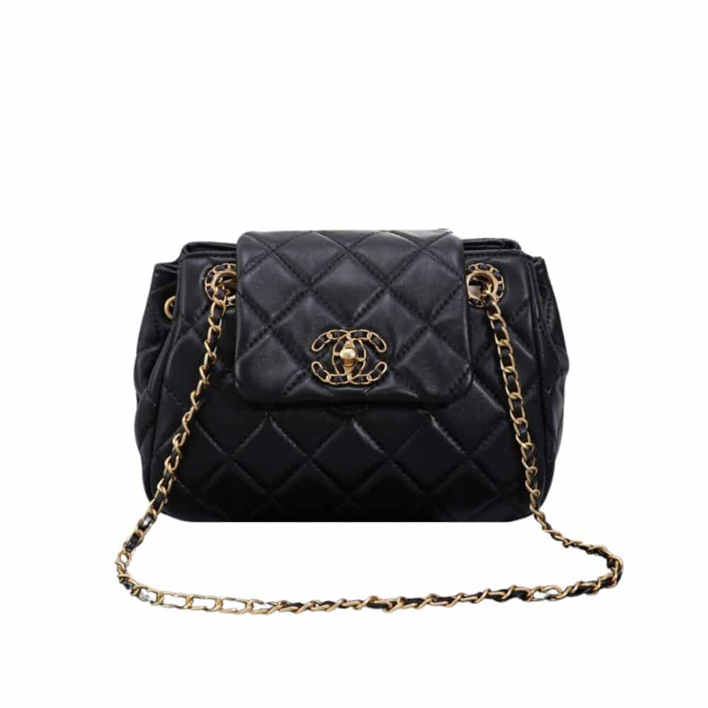 Chanel 19 Flap Bag Shiny, Gold-Tone, Silver-Tone & Ruthenium-Finish Metal Camel AS1160 B04852 NB356 / 26 cm / 10.2 inches