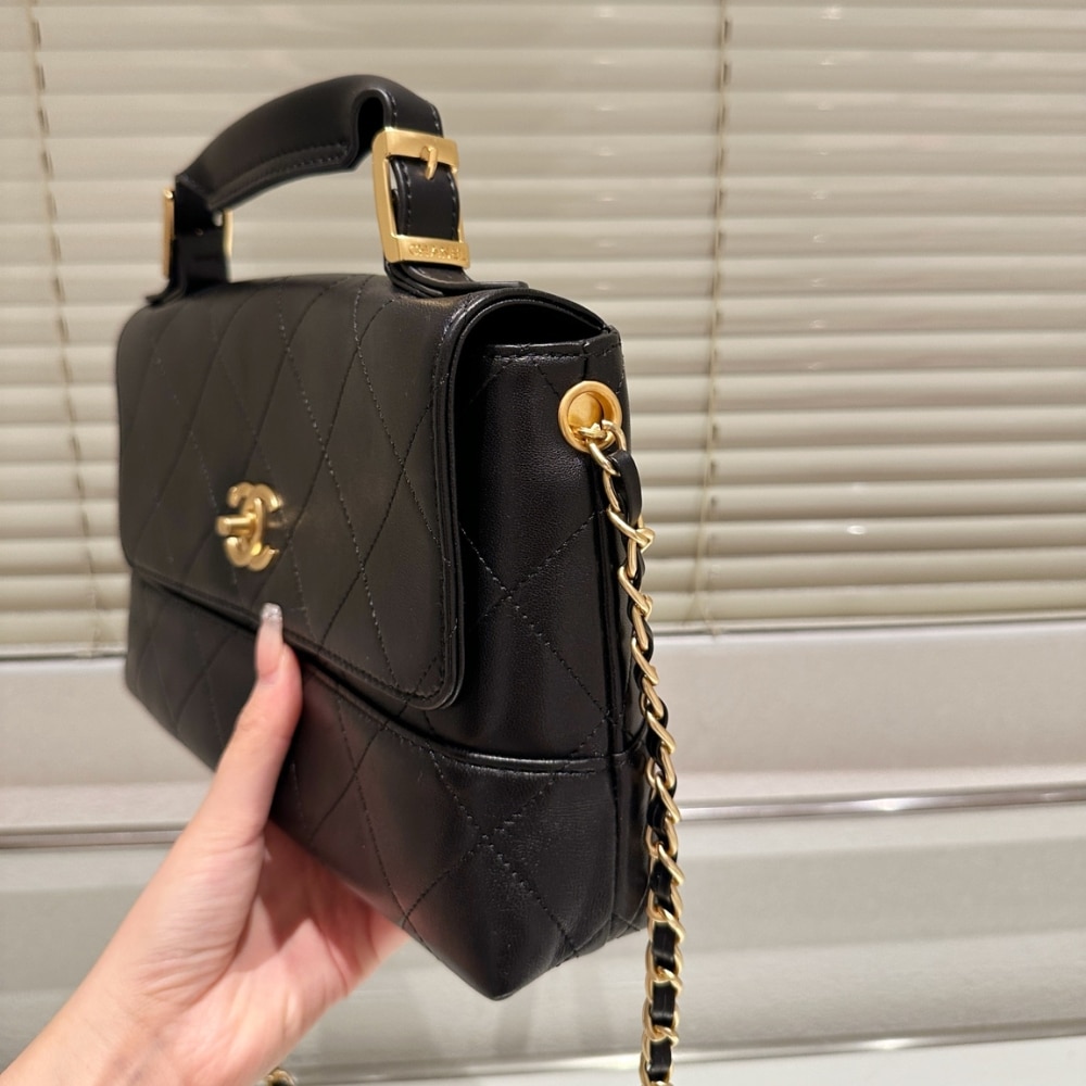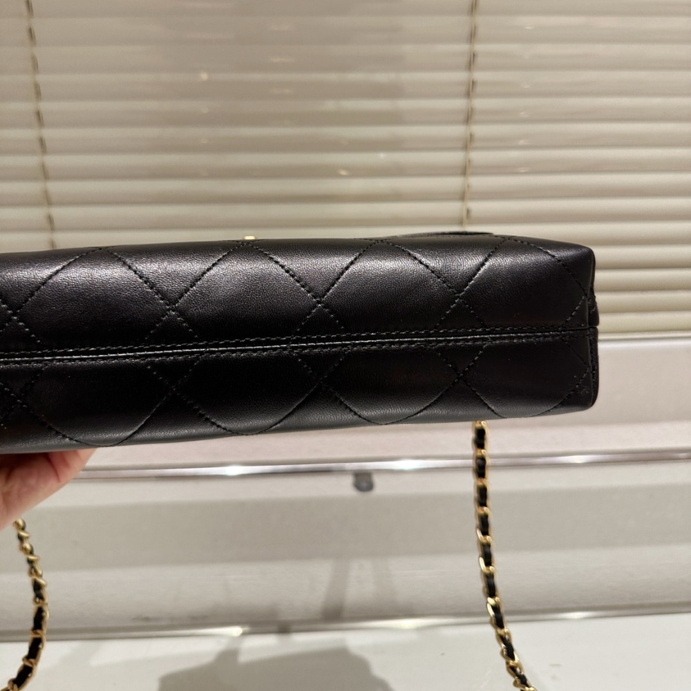 Chanel Large Flap Bag With Top Handle Shiny & Gold-Tone Metal Black AS5467 B20111 94305 / 29 cm / 11.4 inches