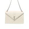 - Fabric with brushed gold hardware featuring signature diamond quilt