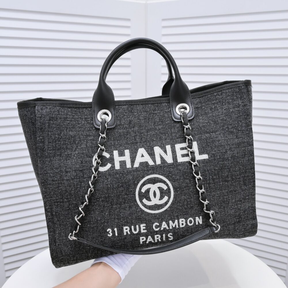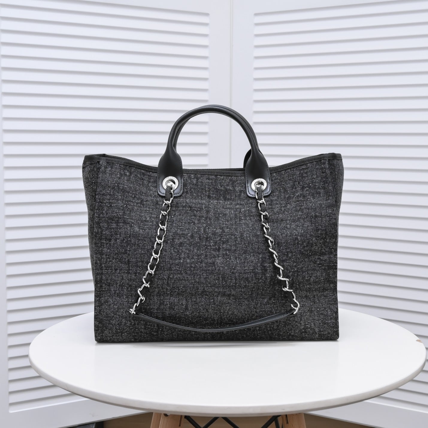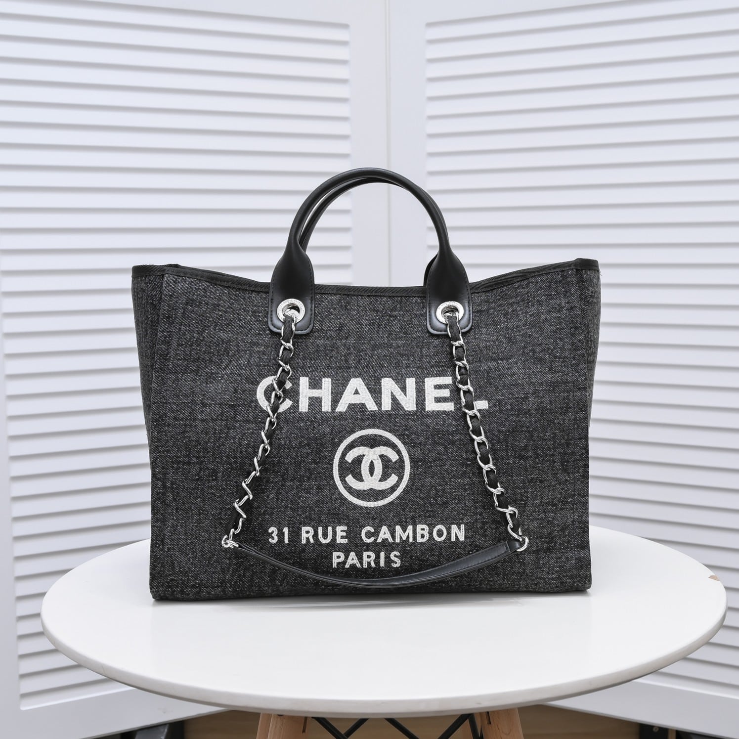 CHANEL LARGE TOTE SLIVER TONE METAL BLACK TOTE 38CM A66941B06387