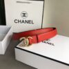 Chanel Leather Belt With Cc Pearl And Gold Tone Metal Red 3Cm