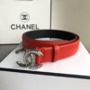 Chanel Leather Belt With Cc Pearl And Silver Tone Metal Red 3Cm