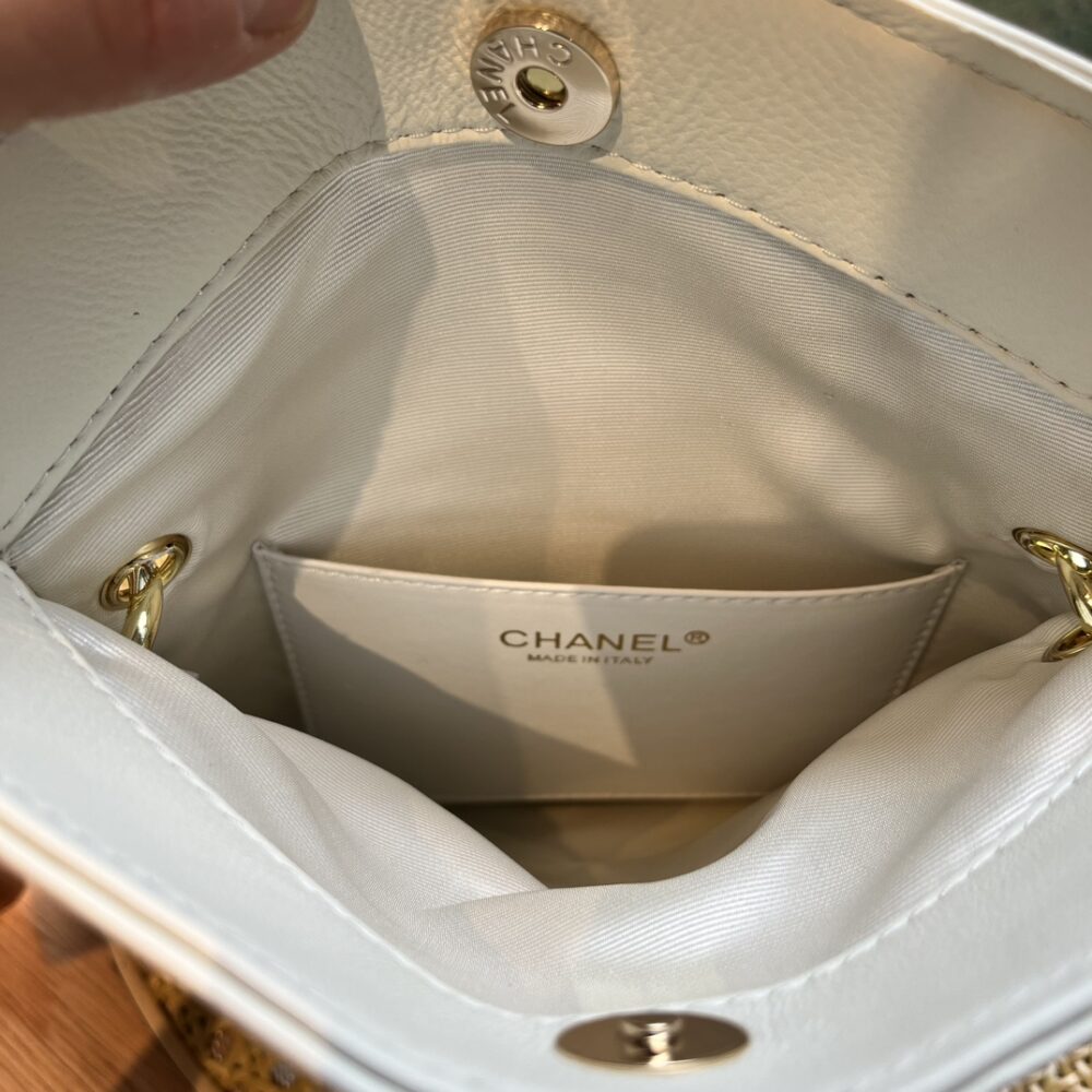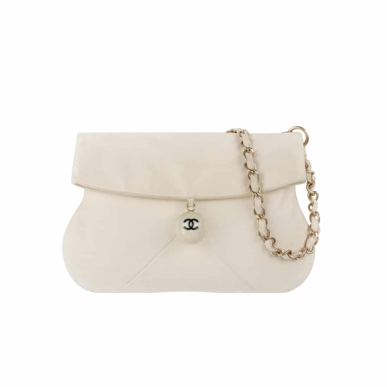 CHANEL LEATHER CUE BALL FOLDOVER BAG IVORY 26CM