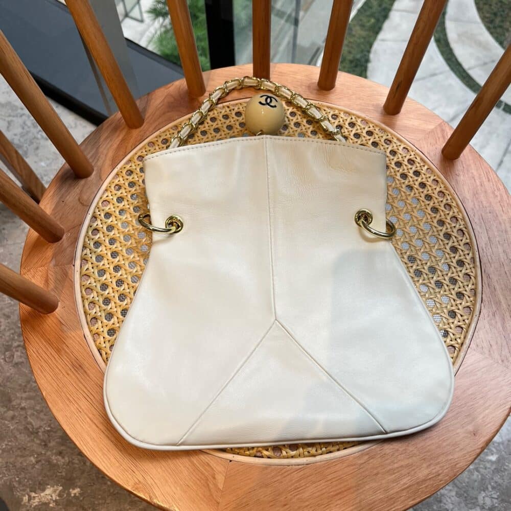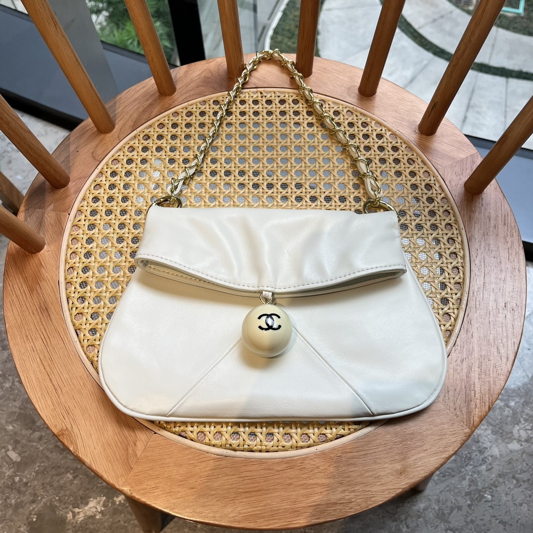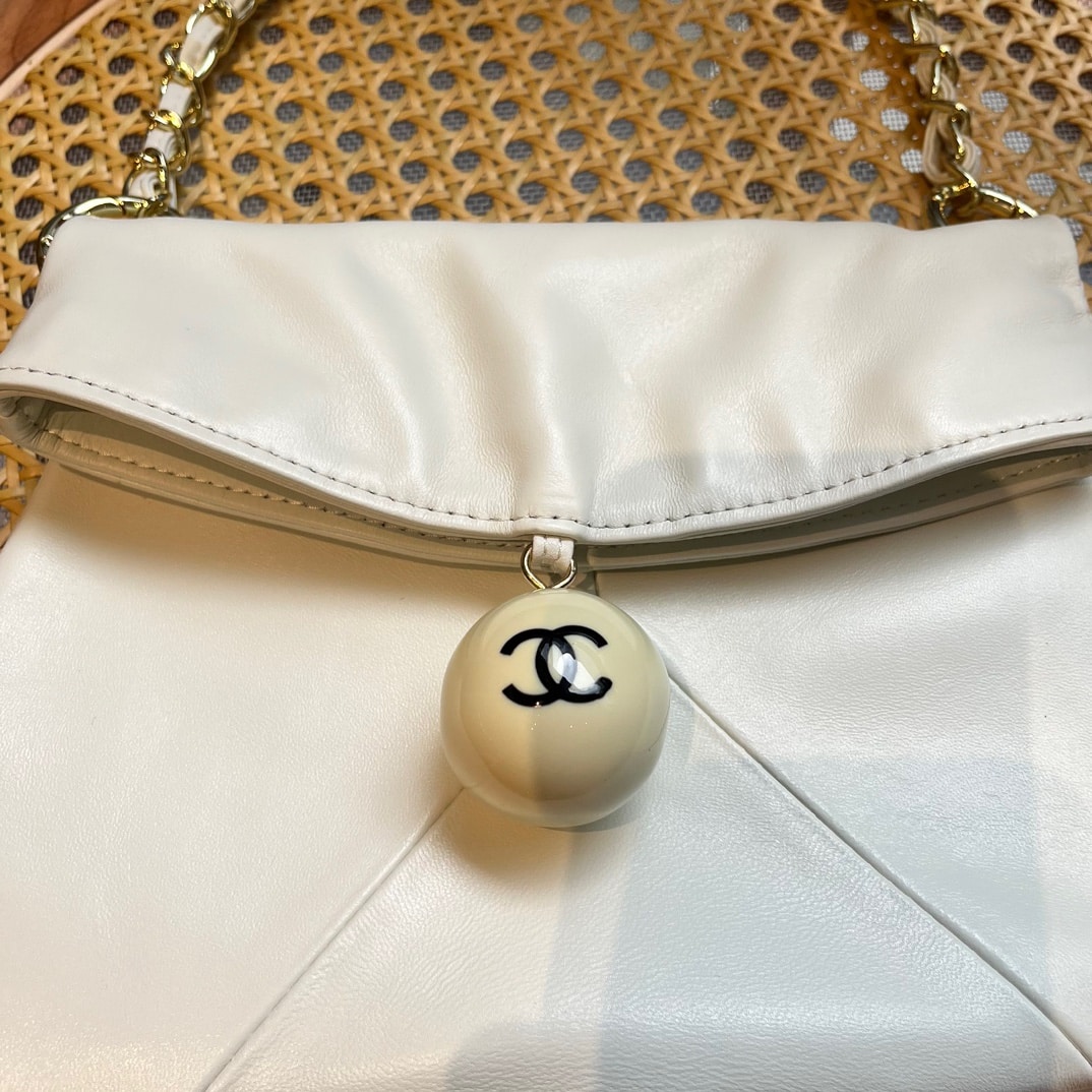 Chanel //Leather Cue Ball Foldover Bag //Ivory// 26cm