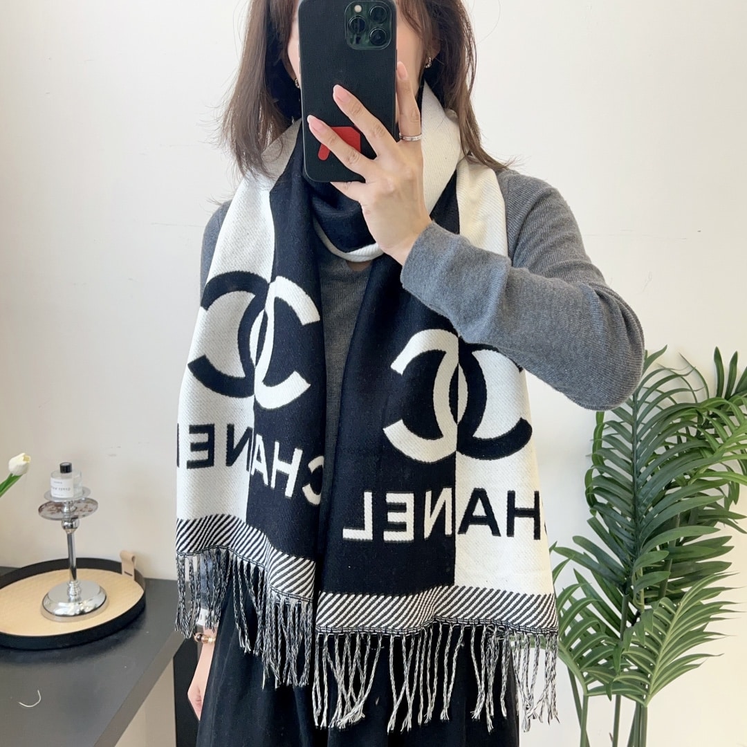 Chanel Scarf Black / 19.7 x 70.9 inches / Cozy Scarf / Chic Style